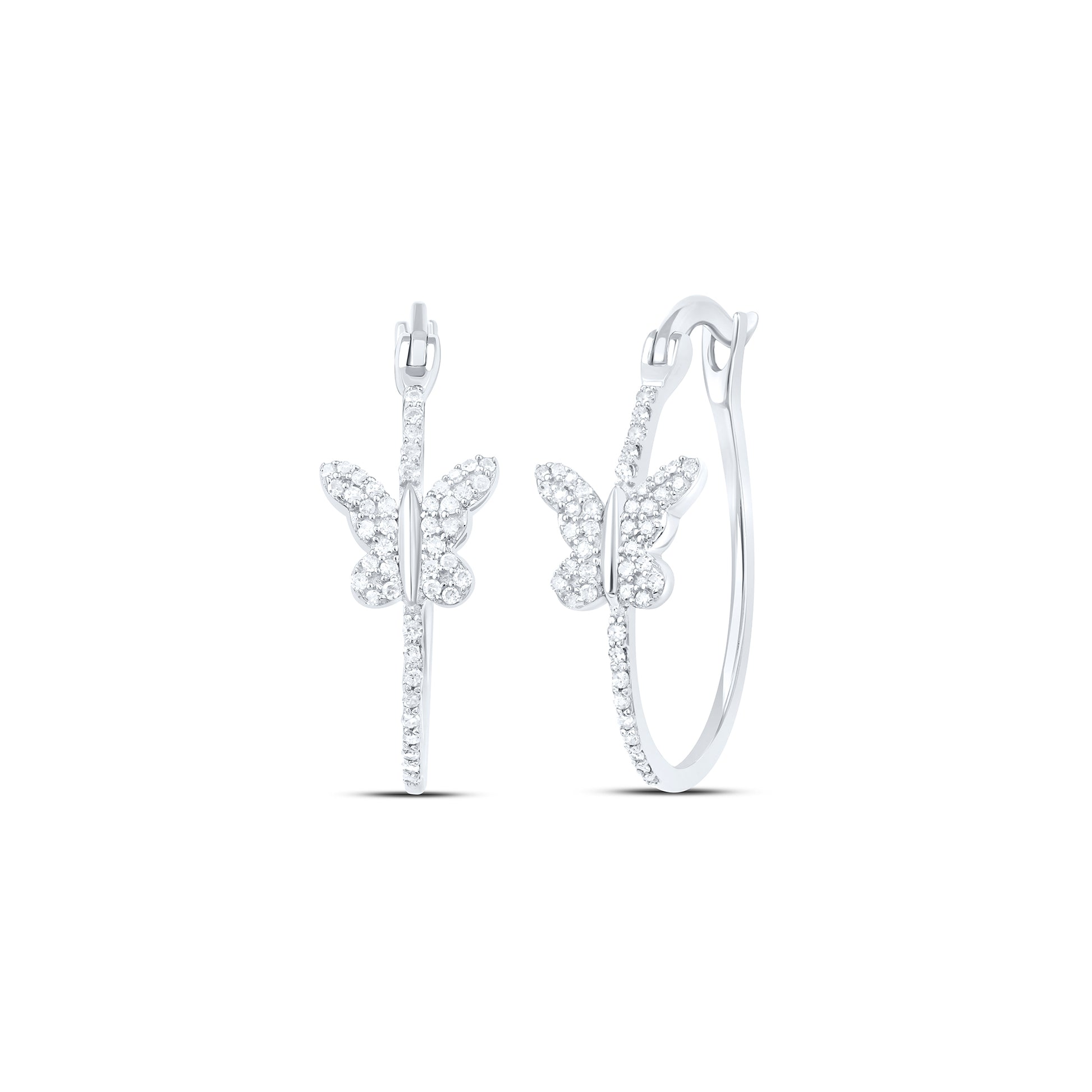 Sterling Silver 1/3 Cttw Diamond Butterfly Hoop Earring