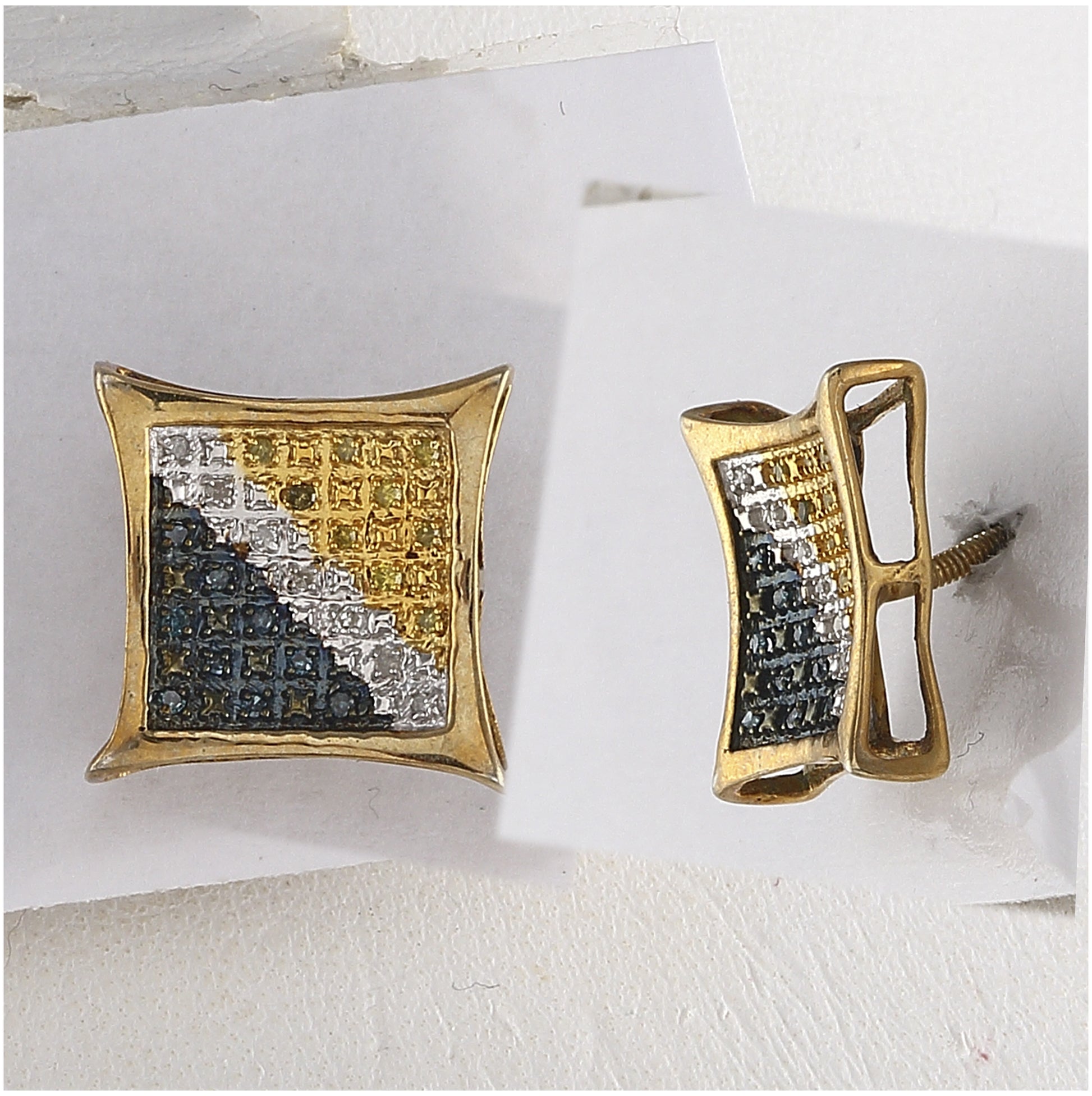 Sterling Silver 1/6ct Diamond P3 Blue Micro-pave Unisex Earring