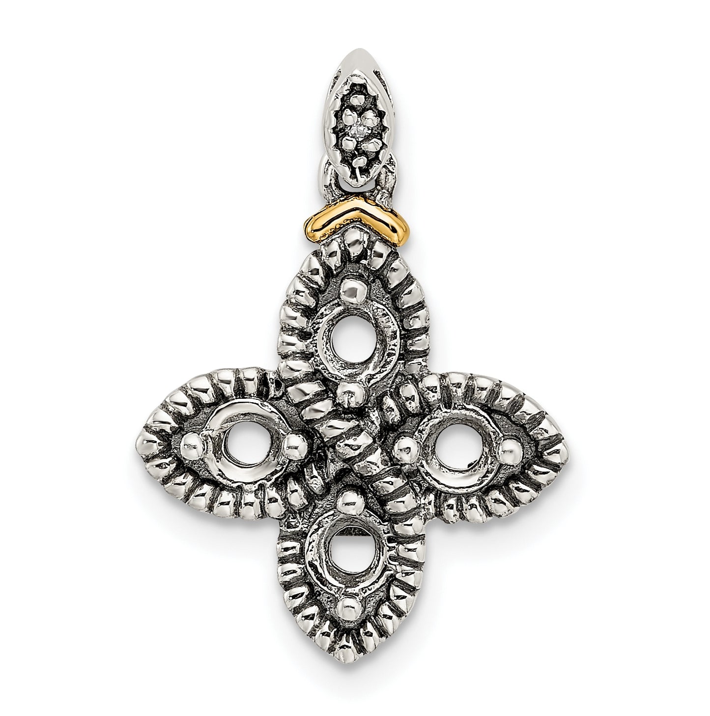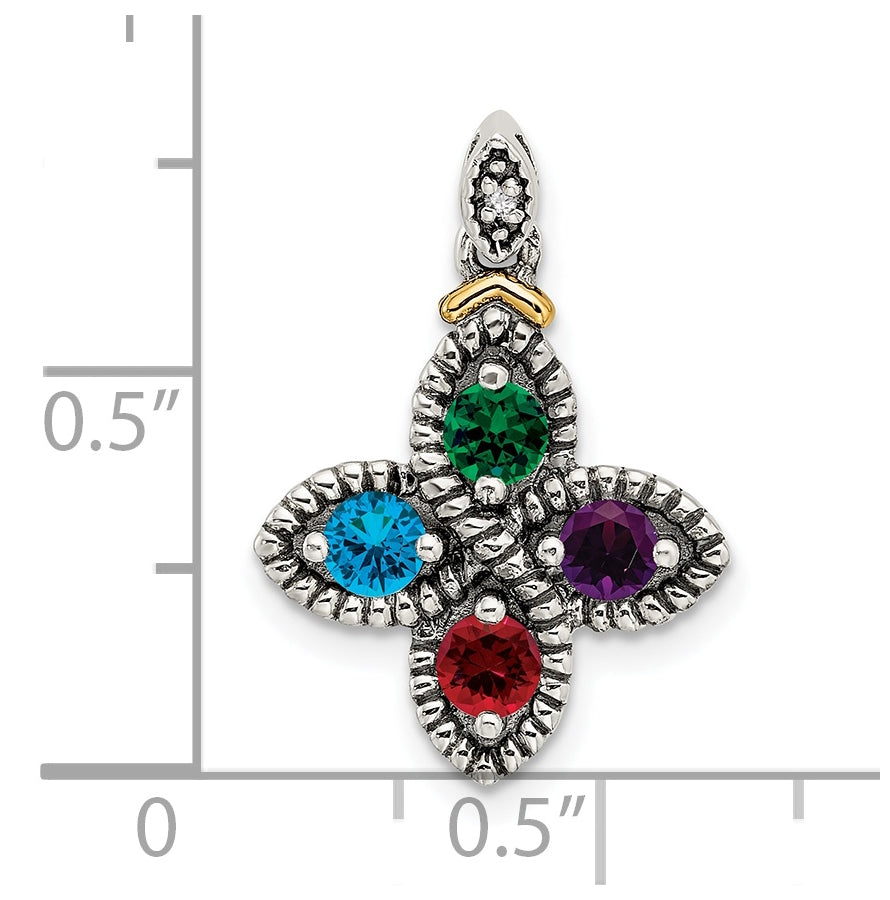 Sterling Silver & 14k 4stone and Diamond Mother's Pendant on 18in Chain