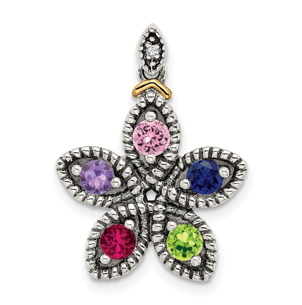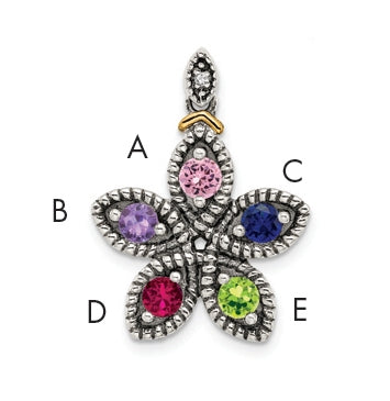 Sterling Silver & 14k 5stone and Diamond Mother's Pendant on 18in Chain