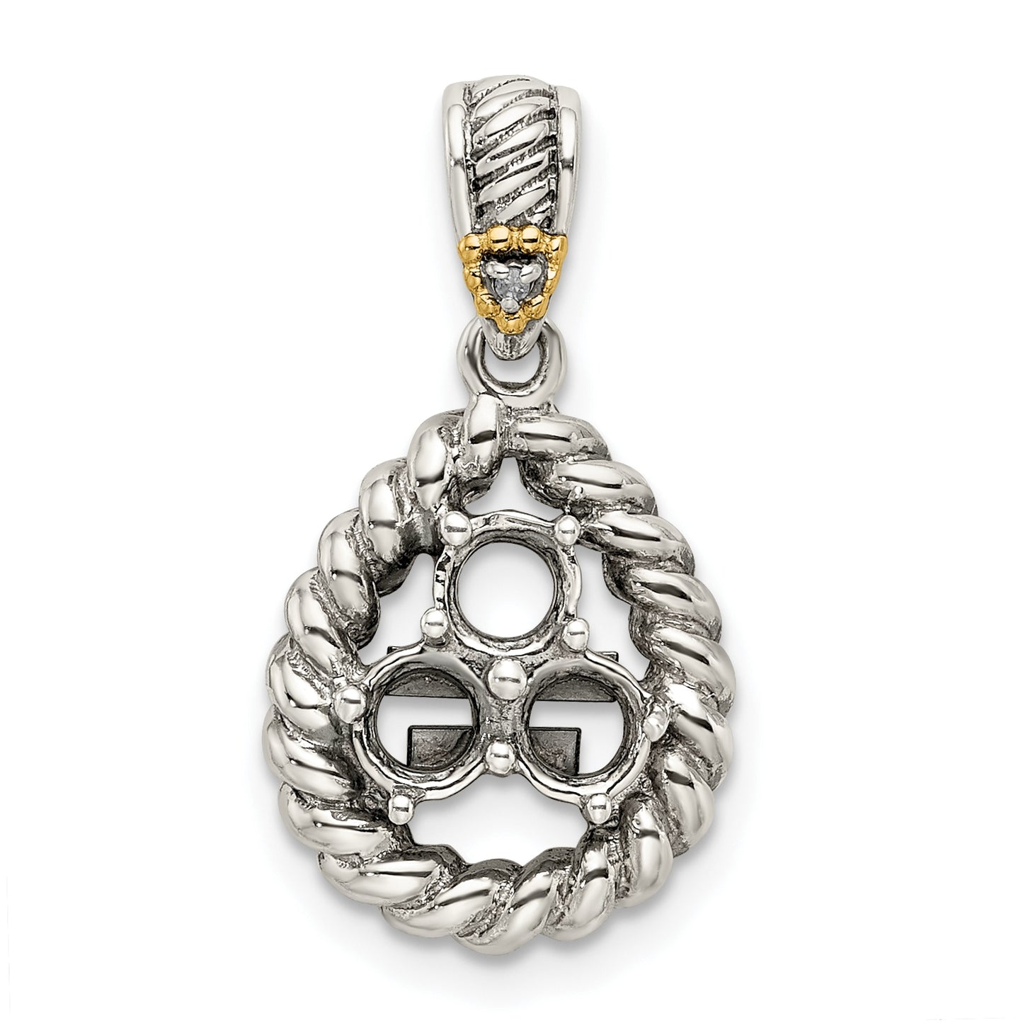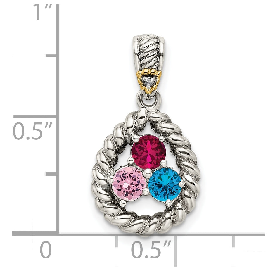 Sterling Silver & 14k Three-stone and Diamond Mothers Pendant on 18in Chain