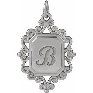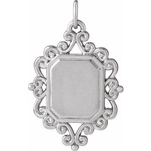 Sterling Silver 21.63 X 13.51 Mm Polished Engravable Scroll Pendant