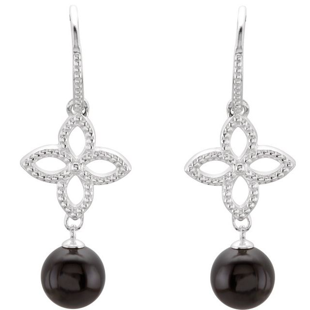 Sterling Silver 8 Mm Round Backless Polished Natural Onyx Earrings