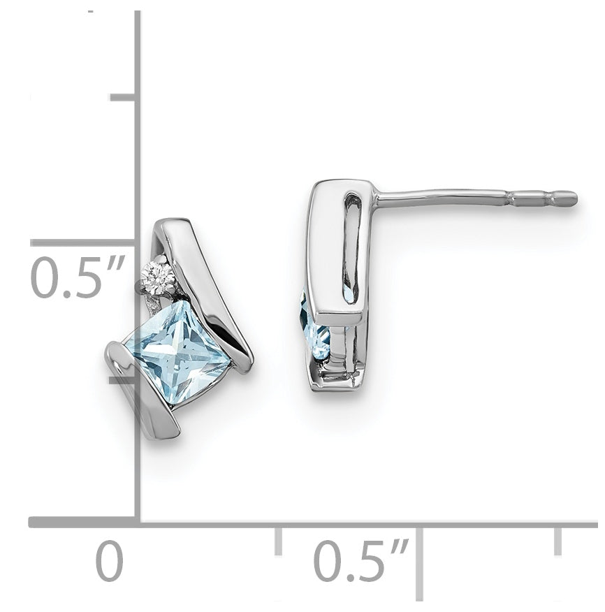 Sterling Silver Antique Cushion Aquamarine and Diamond Earrings