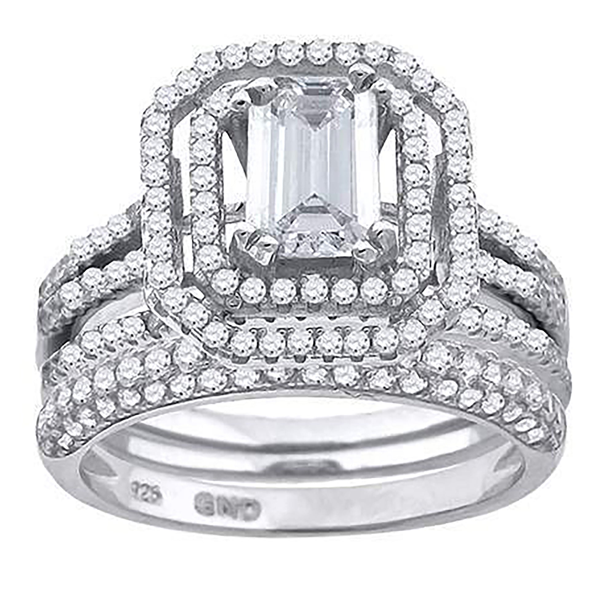 Sterling Silver Cubic Zirconia Halo Bridal Anniversary Engagement Wedding Trio Set Ring