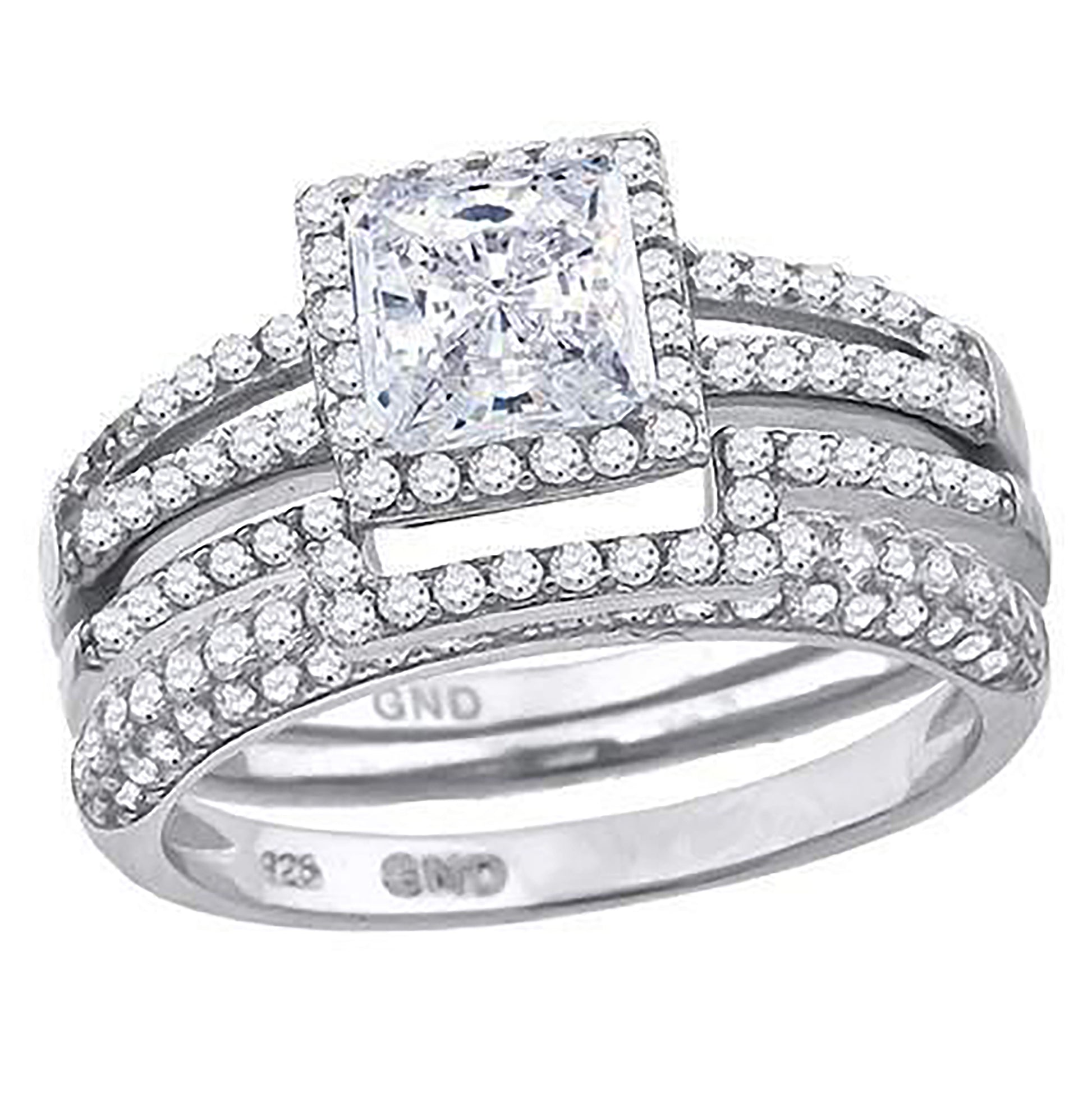 Sterling Silver Cubic Zirconia Halo Bridal Anniversary Engagement Wedding Trio Set Ring