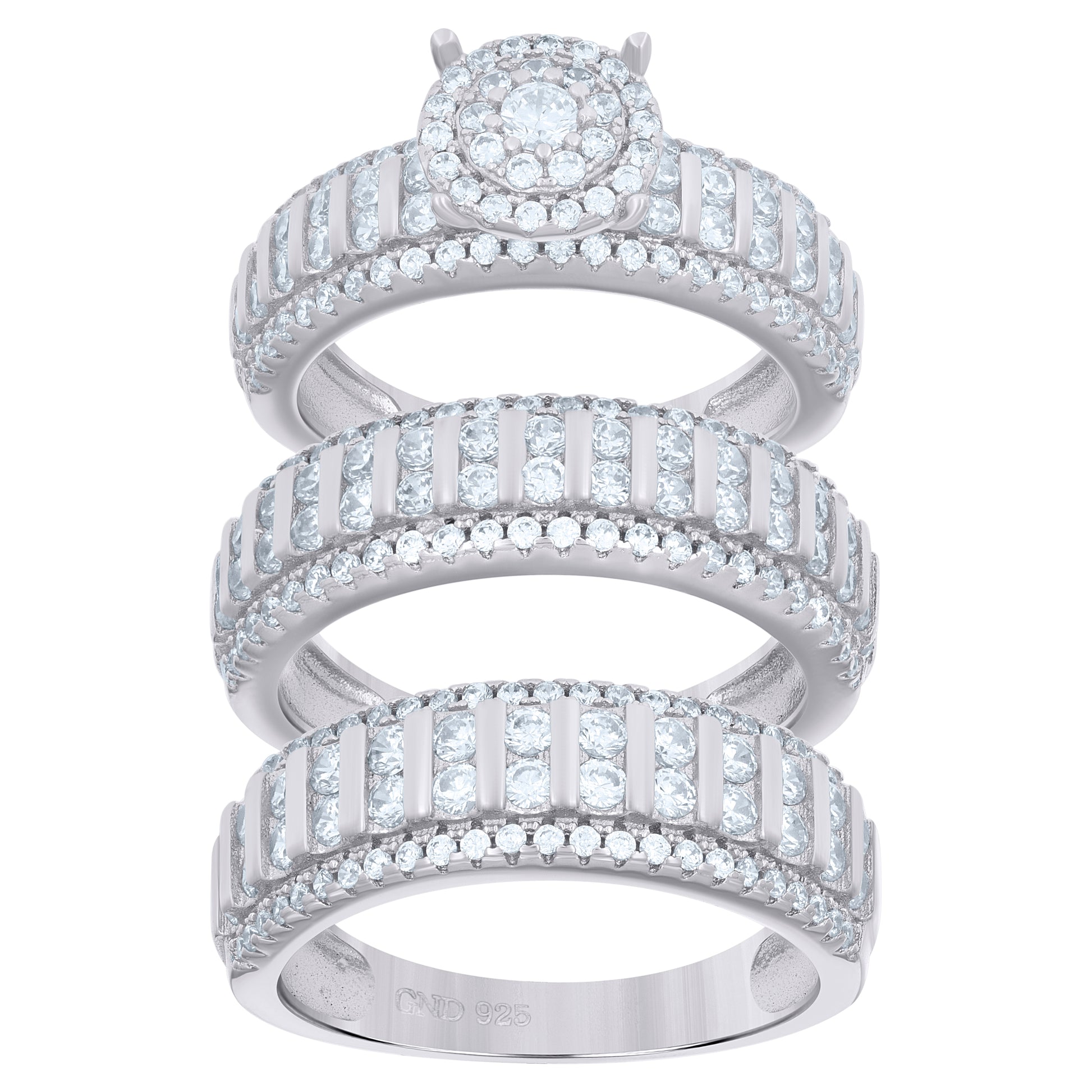Sterling Silver Cubic Zirconia Migraine Trio Bridal Anniversary Wedding Engagement Band Ring Set