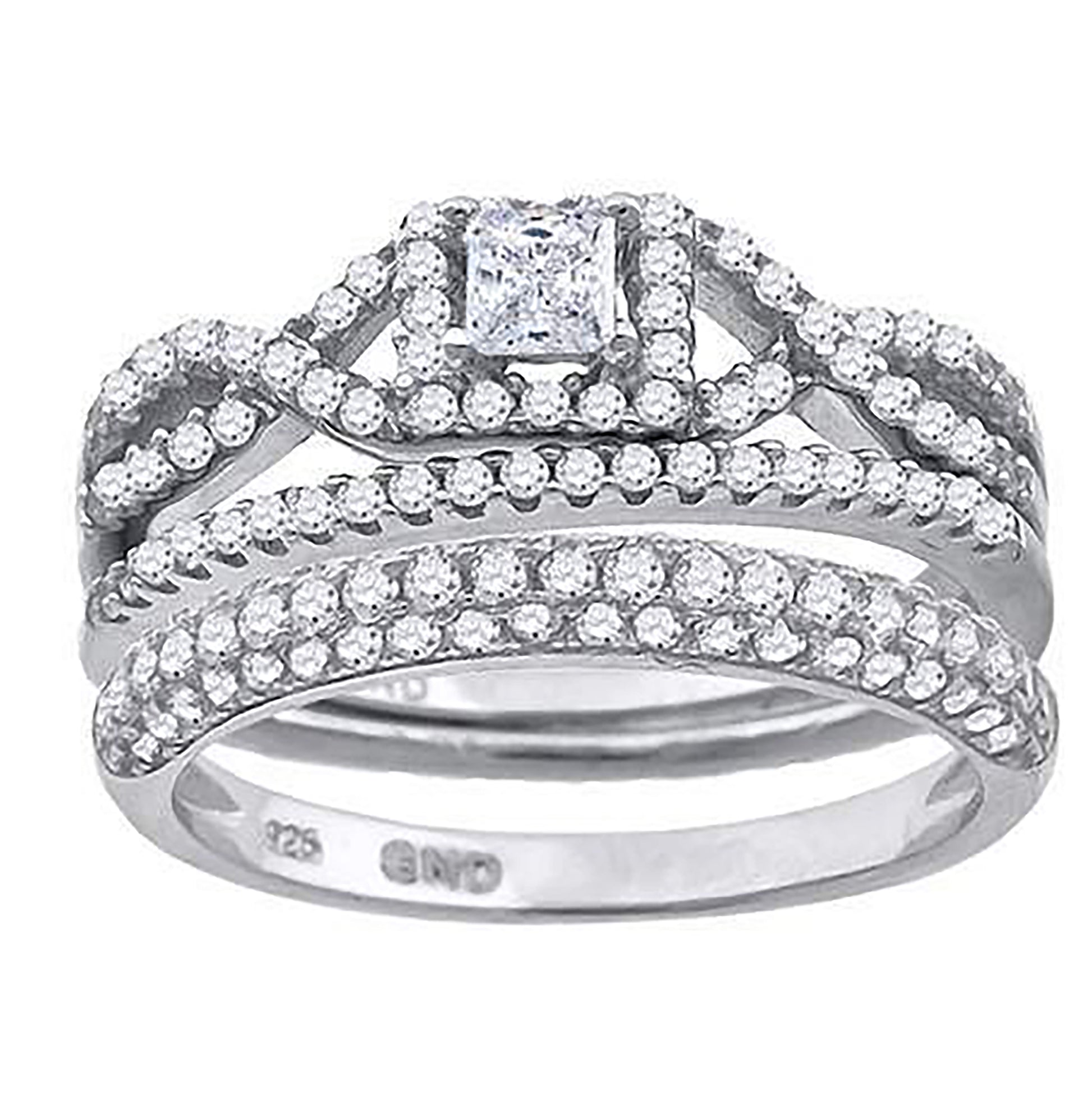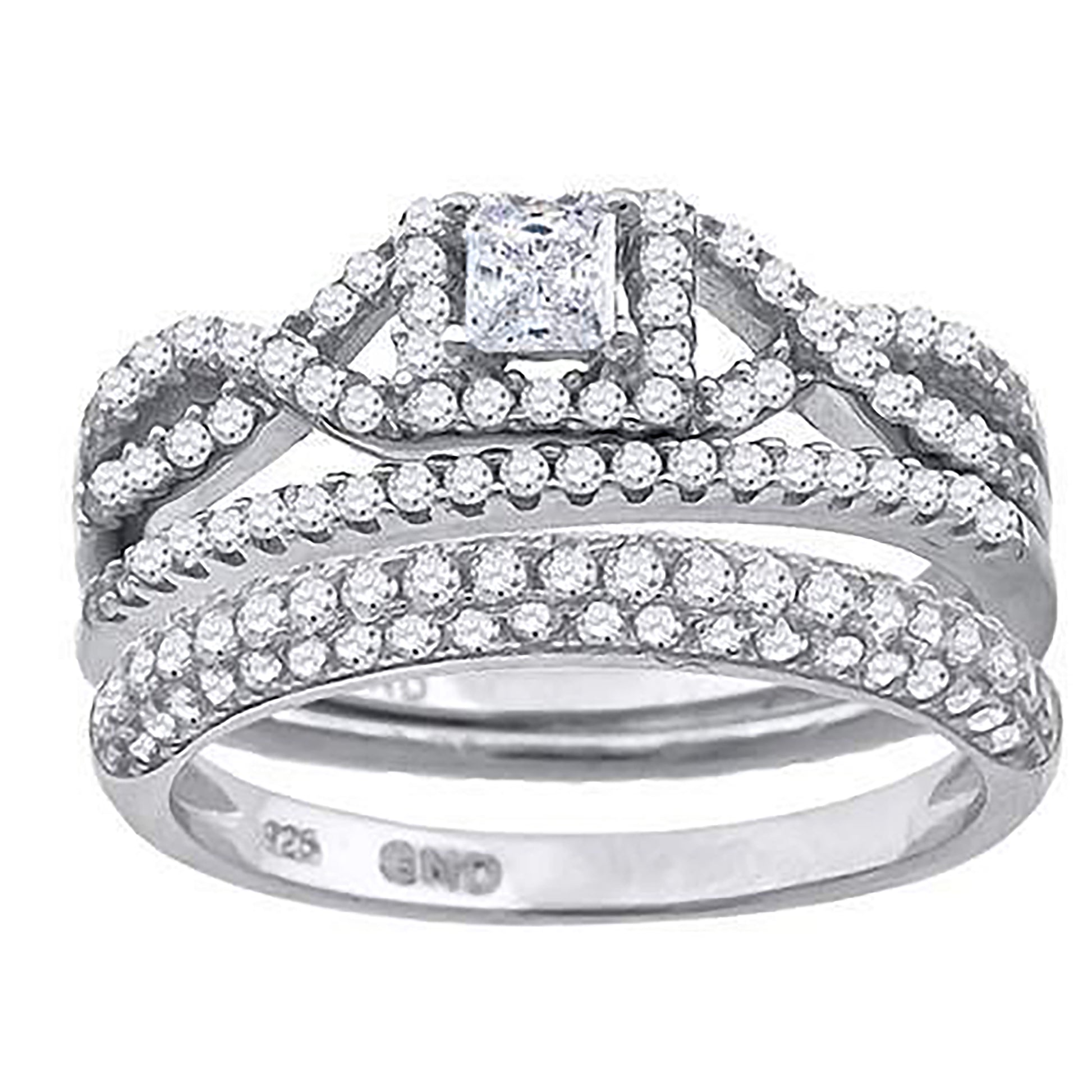 Sterling Silver Cubic Zirconia Trio Bridal Anniversary Wedding Engagement Band Ring