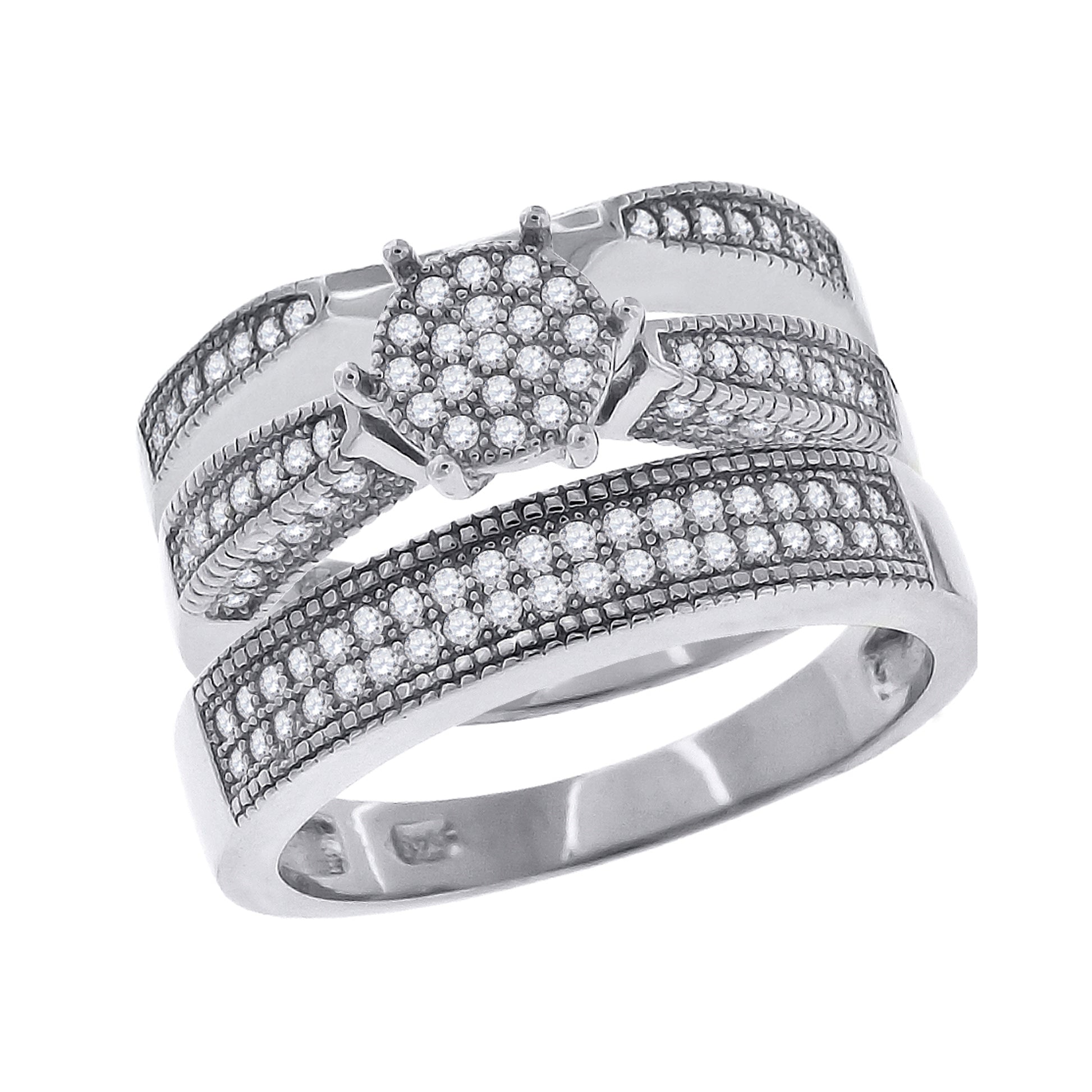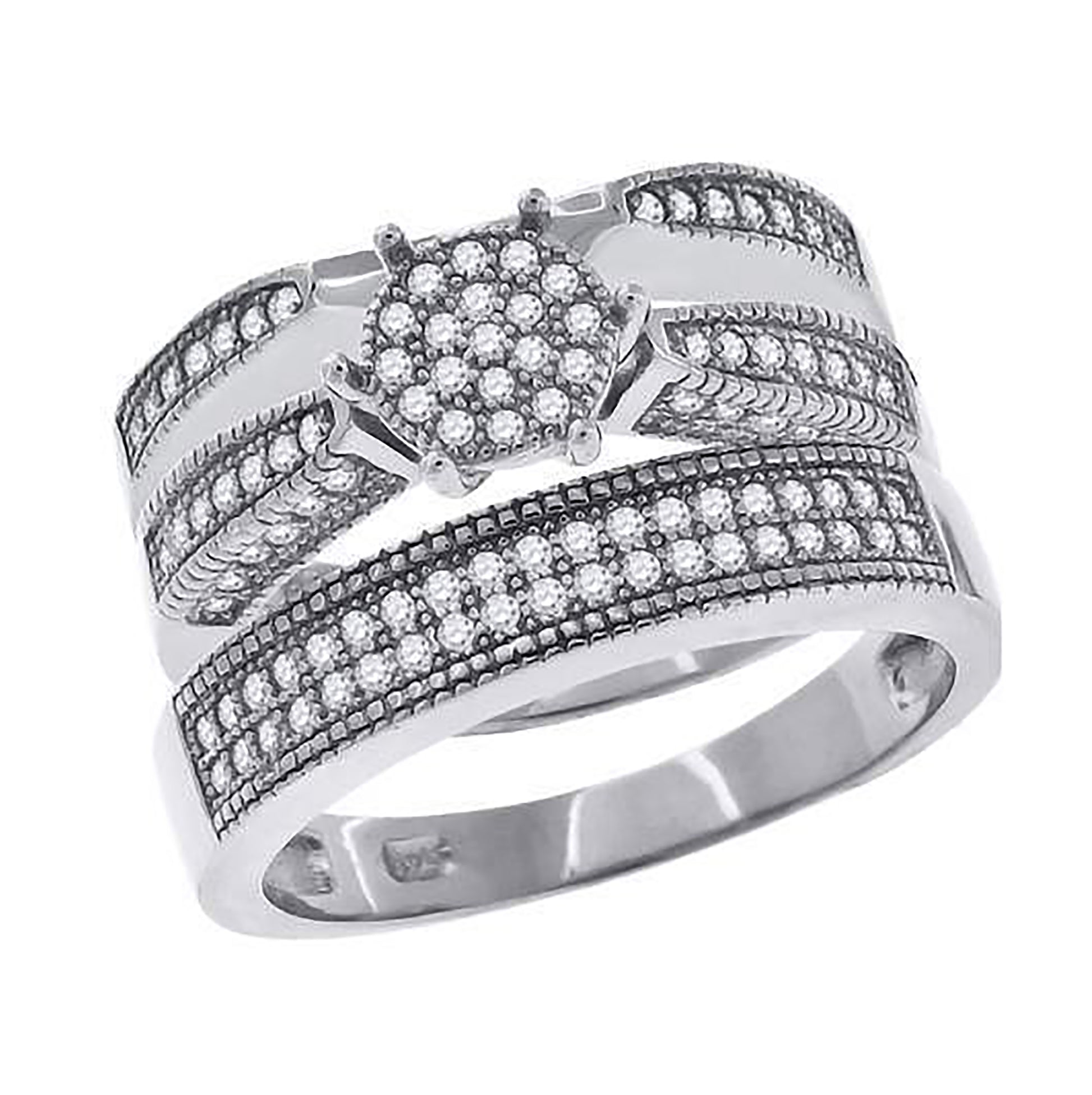 Sterling Silver Cubic Zirconia Trio Sizes 6 To 11 Bridal Anniversary Engagement Wedding Band Ring