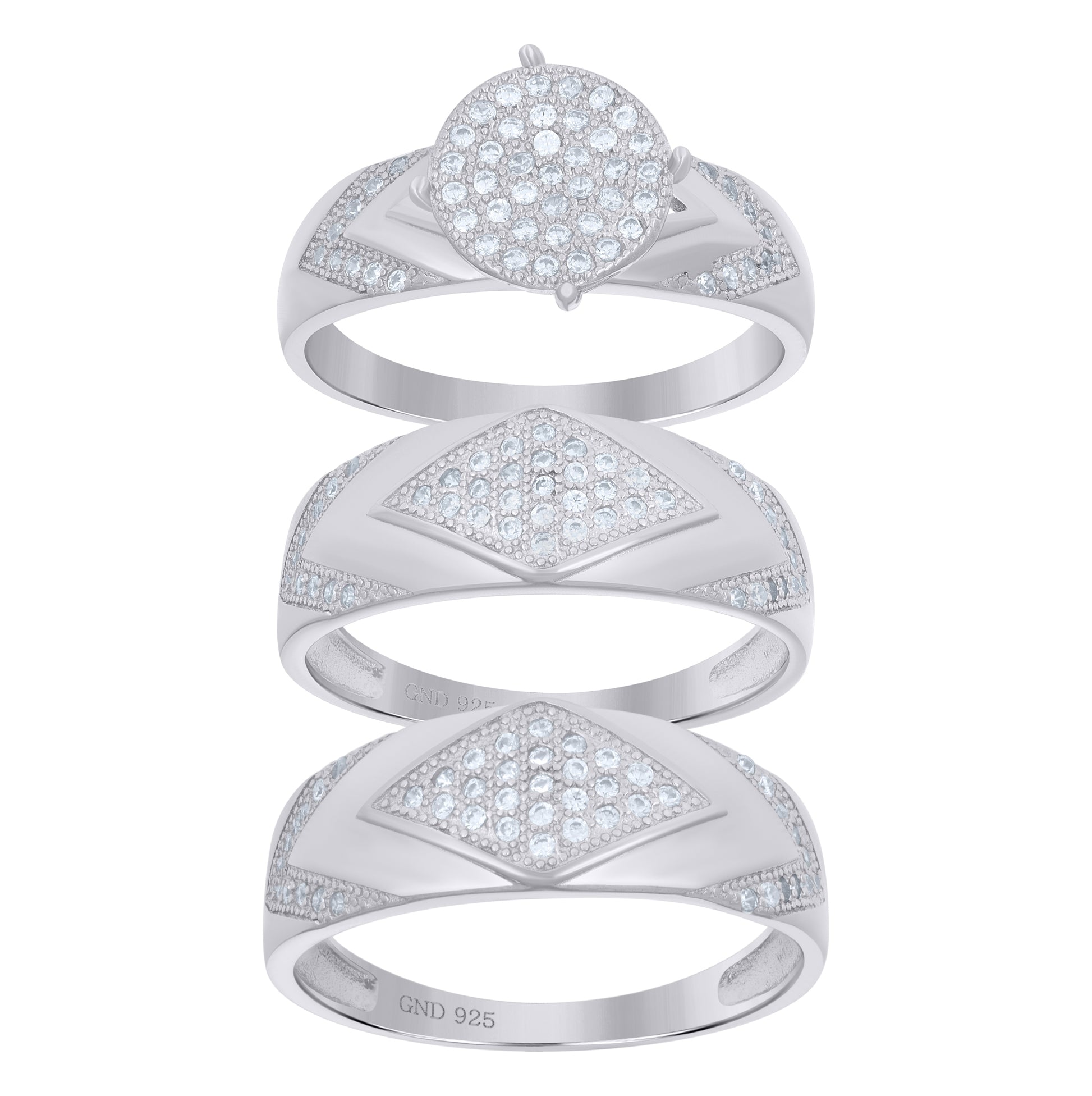 Sterling Silver Cubic Zirconia Trio Sizes 6 To 11 Cluster Matching Bridal Anniversary Engagement Wedding Ring Band