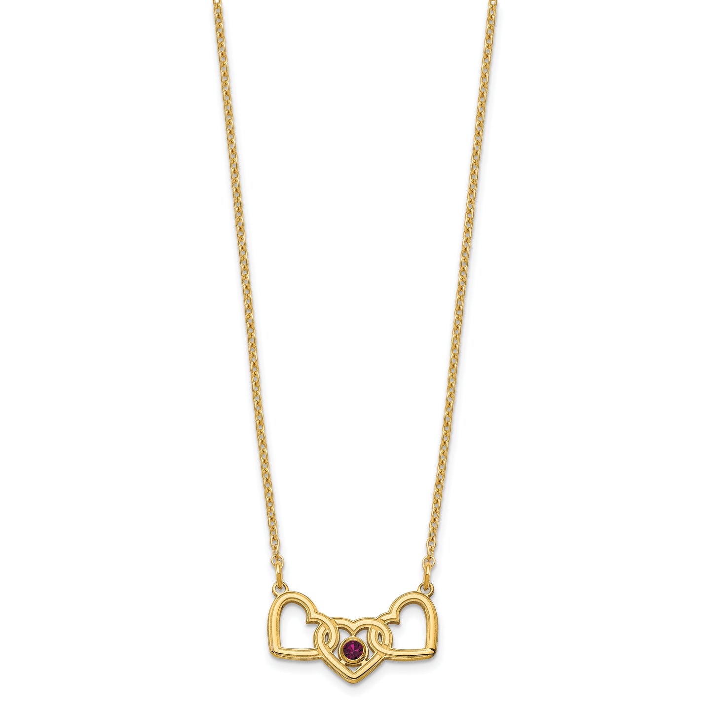 Sterling Silver Gold plated 3 Hearts with 1 Birthstone Necklace