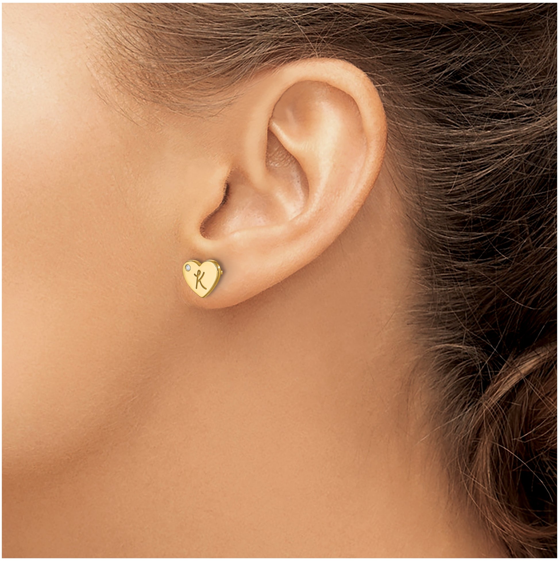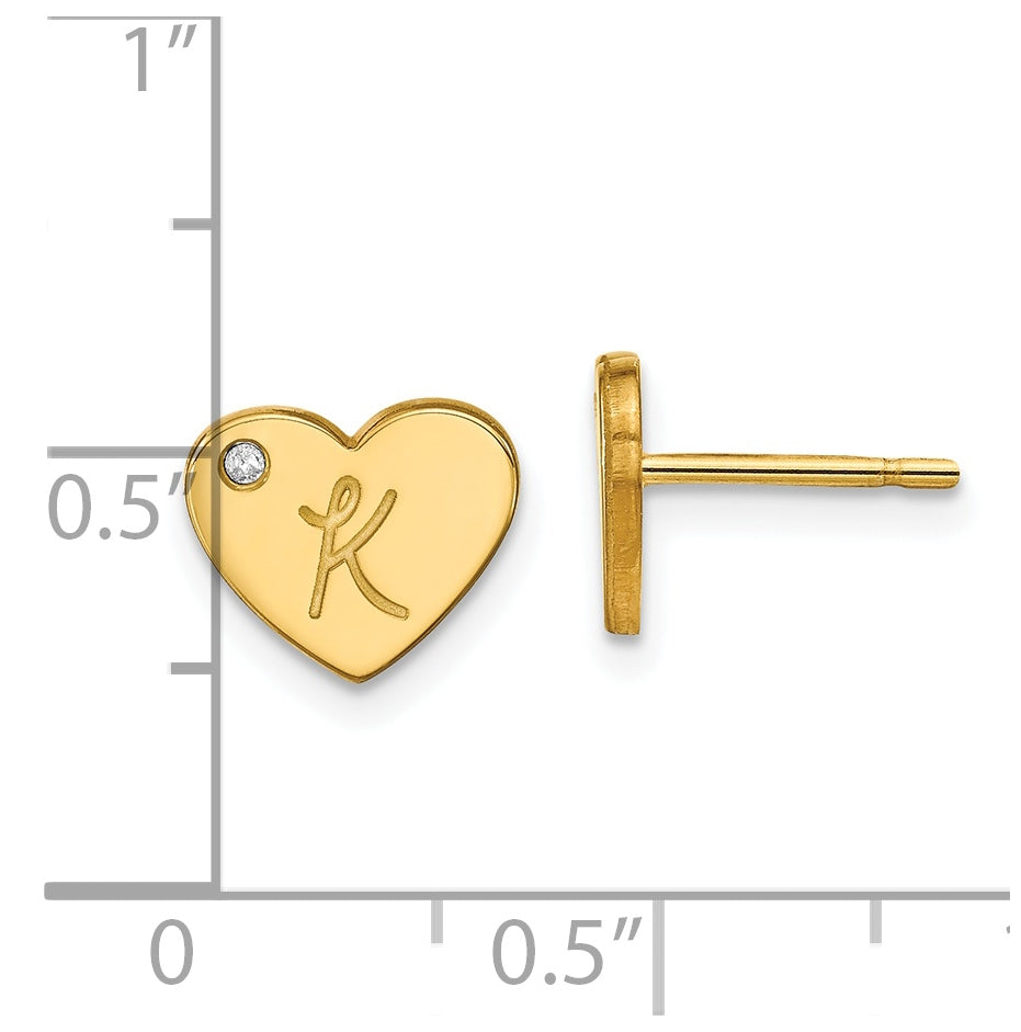 Sterling Silver Gold Plated Initial Heart with Diamond Post Earrings