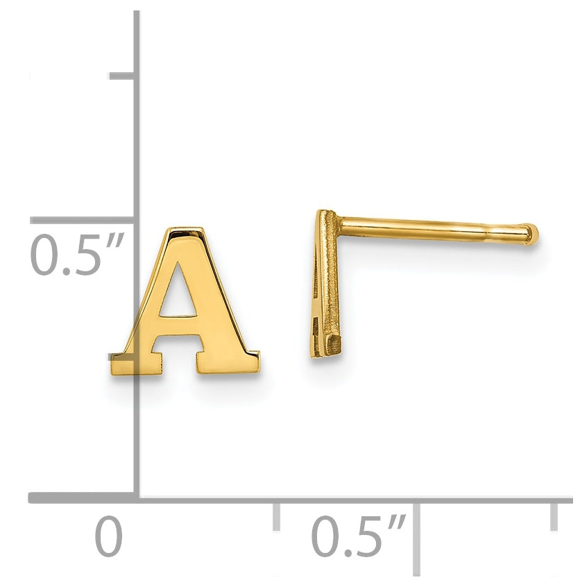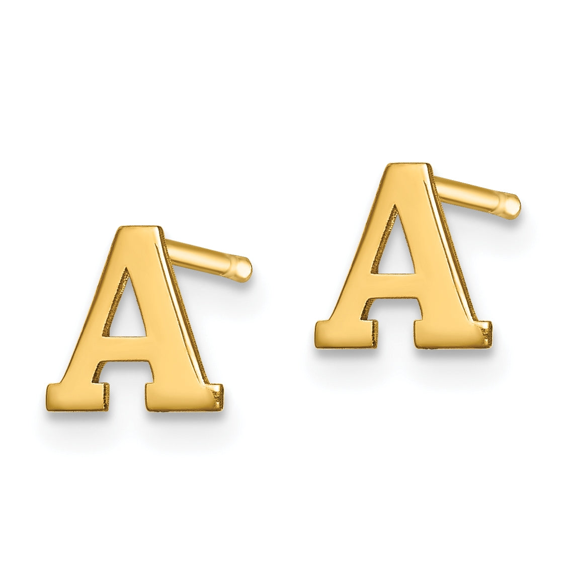 Sterling Silver Gold plated Letter A Initial Post Earrings