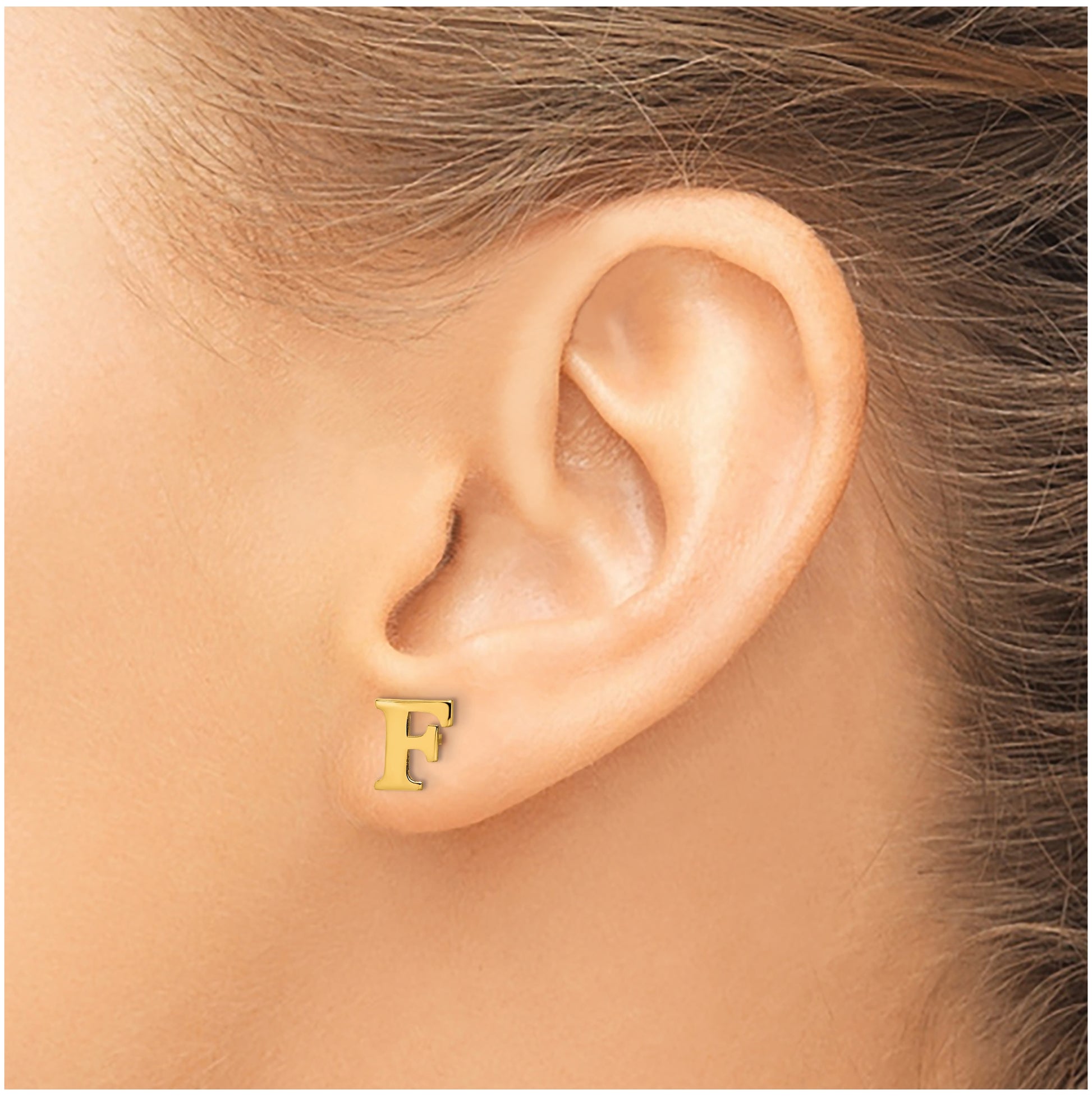Sterling Silver Gold plated Letter F Initial Post Earrings