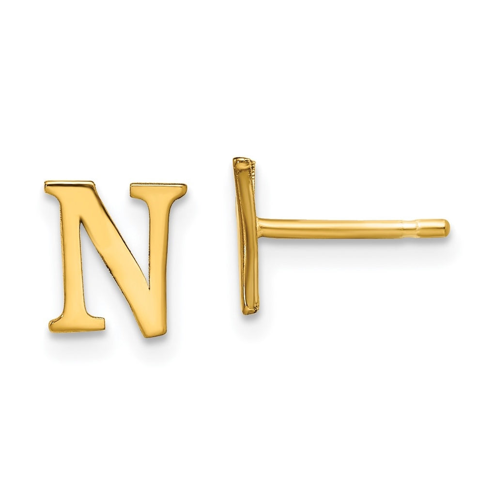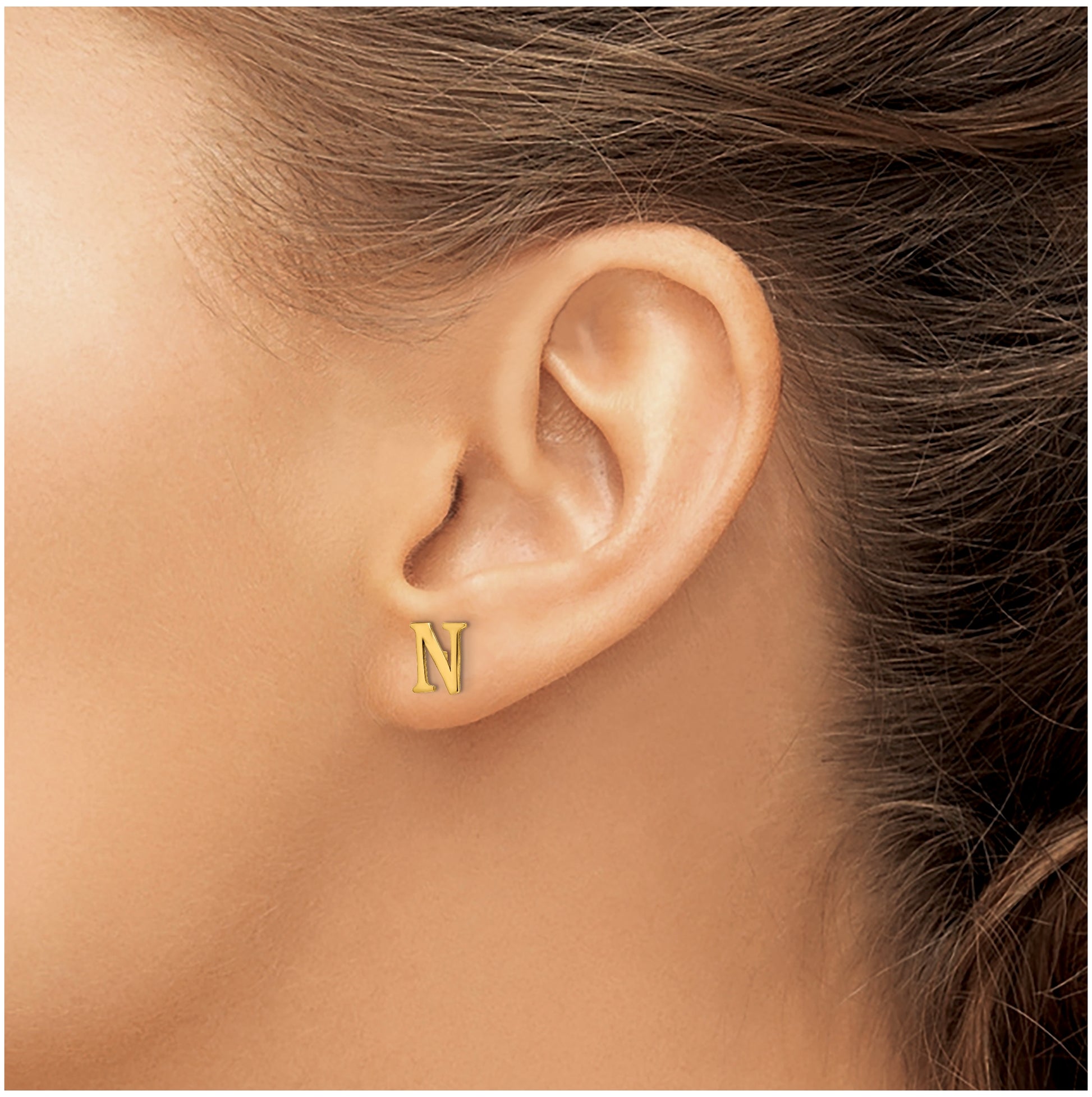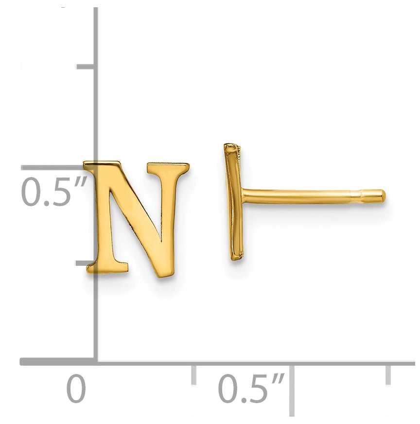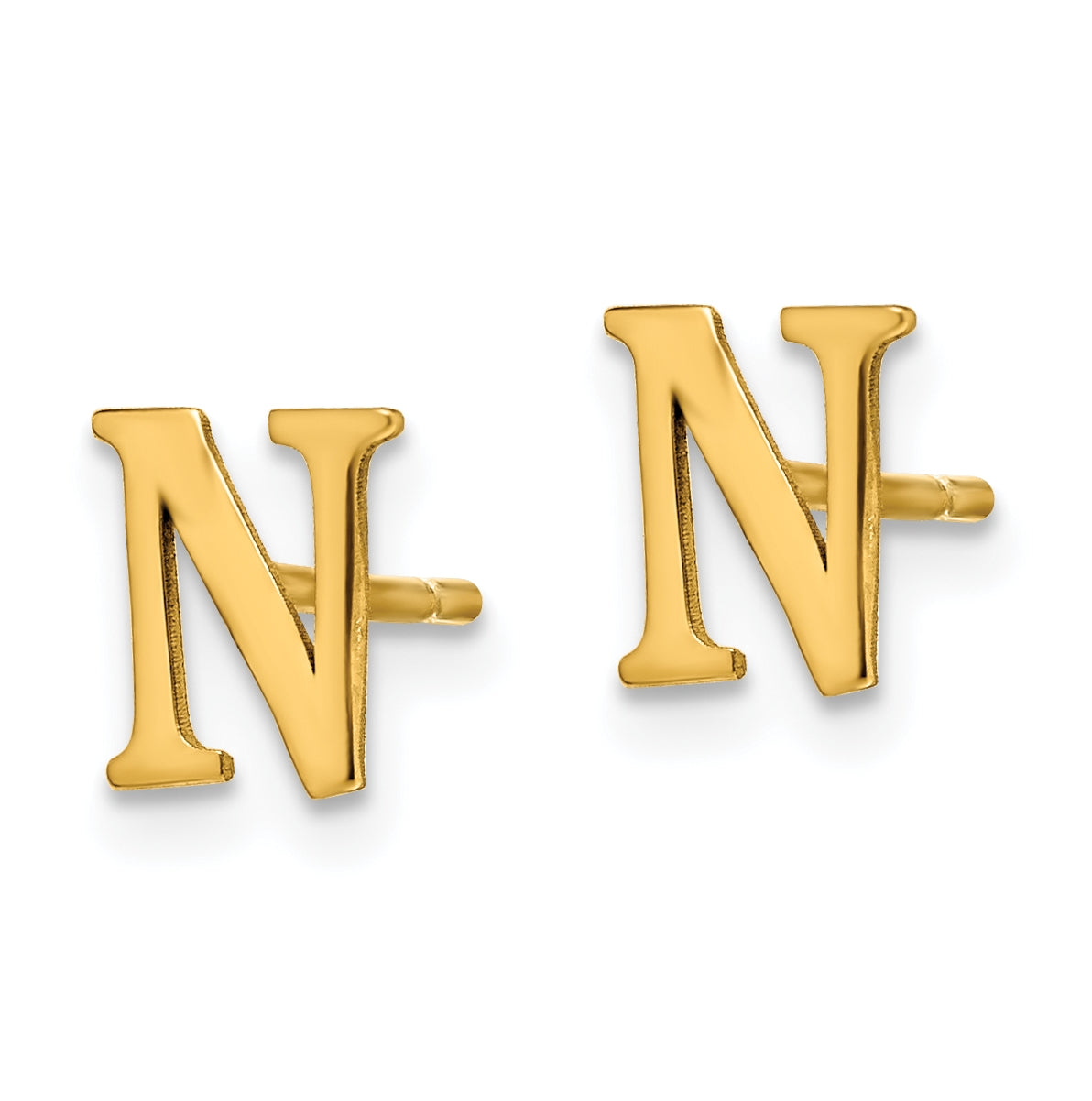 Sterling Silver Gold plated Letter N Initial Post Earrings