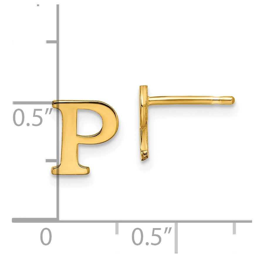 Sterling Silver Gold plated Letter P Initial Post Earrings