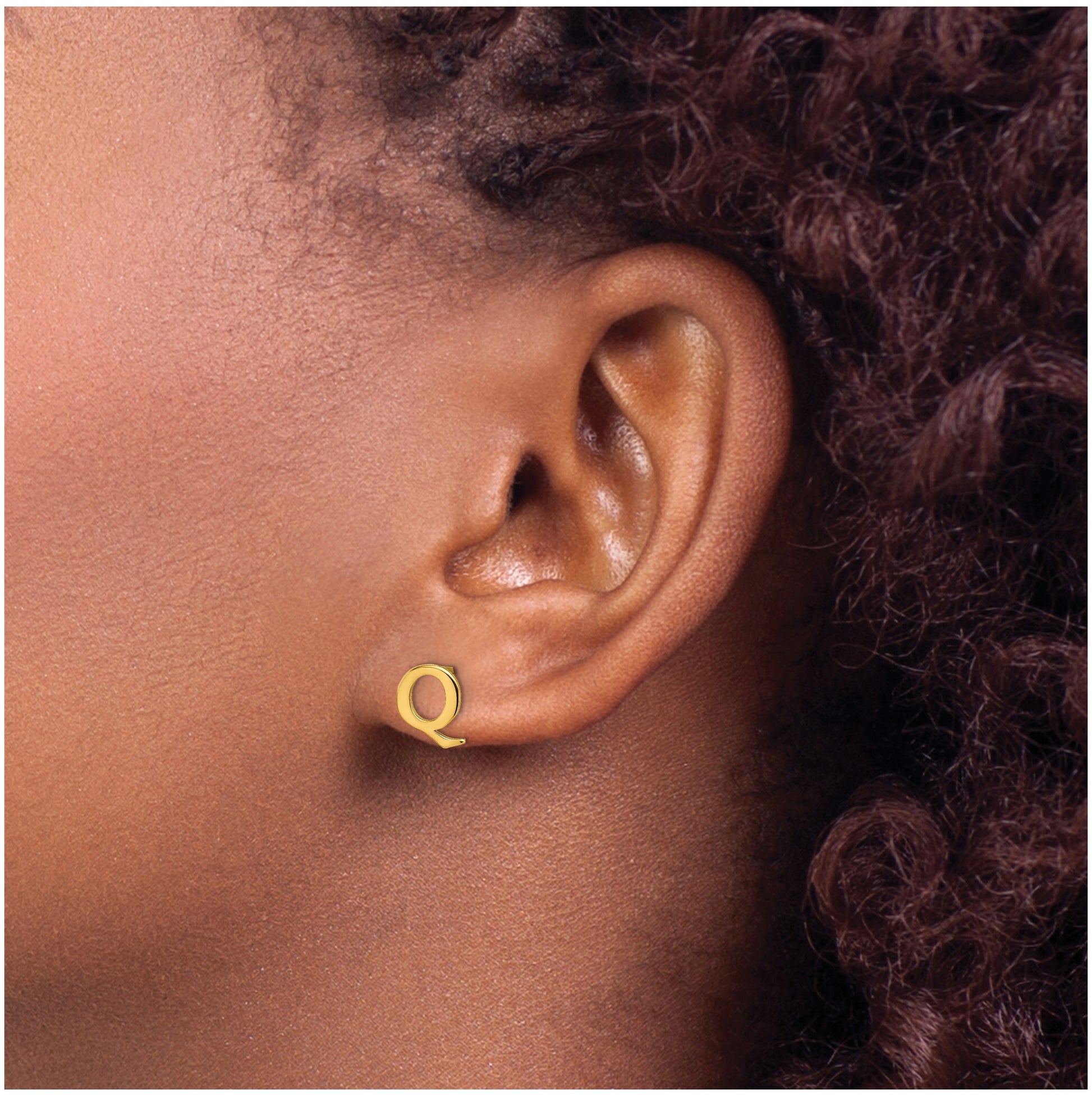 Sterling Silver Gold plated Letter Q Initial Post Earrings