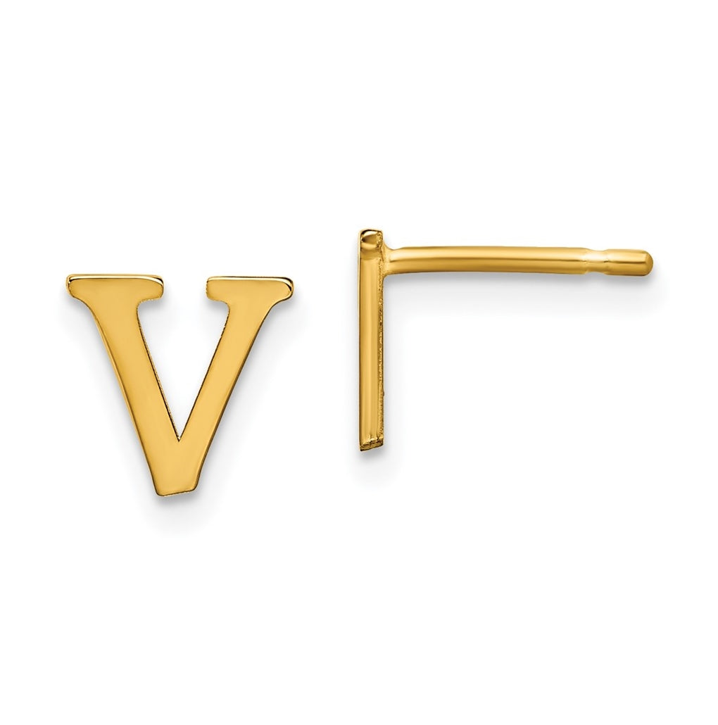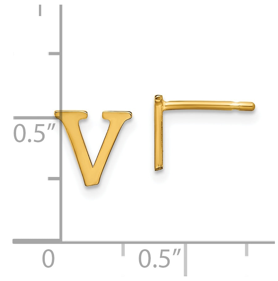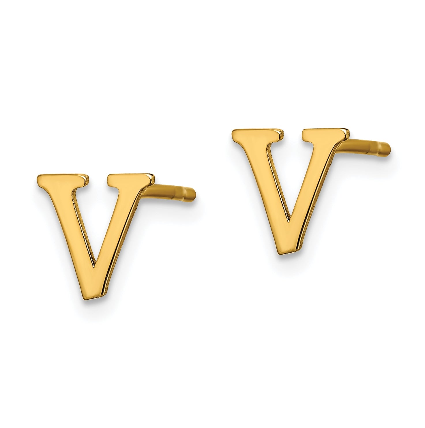 Sterling Silver Gold plated Letter V Initial Post Earrings