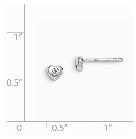 Sterling Silver Madi K Rhodium plated Polished April White Preciosa Crystal Heart Children's Post Earrings