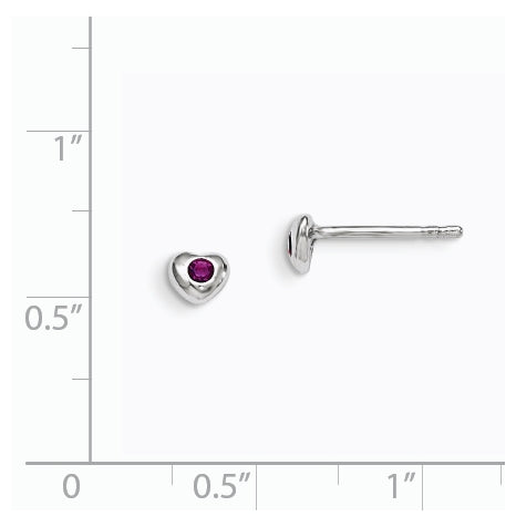 Sterling Silver Madi K Rhodium plated Polished February Purple Preciosa Crystal Heart Children's Post Earrings