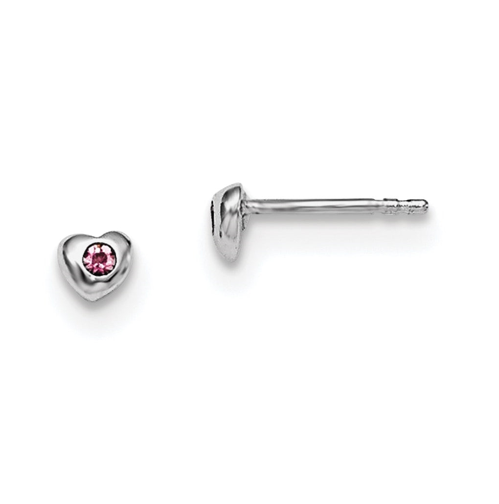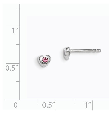 Sterling Silver Madi K Rhodium plated Polished June Pink Preciosa Crystal Heart Children's Post Earrings