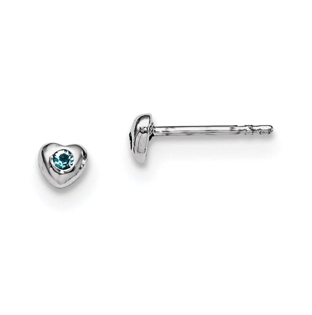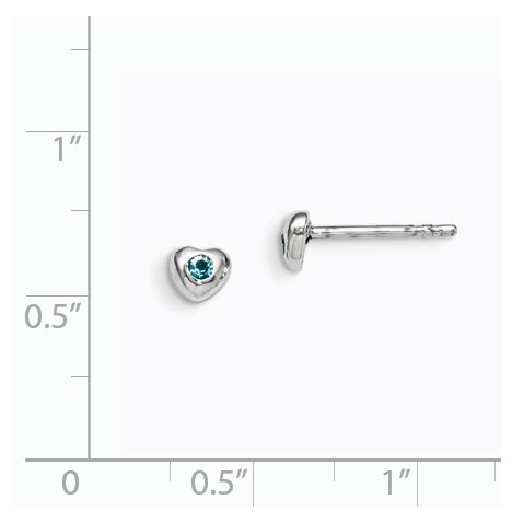 Sterling Silver Madi K Rhodium plated Polished March Light Blue Preciosa Crystal Heart Children's Post Earrings