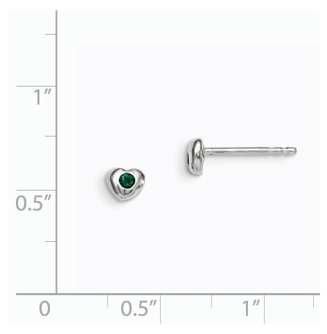 Sterling Silver Madi K Rhodium plated Polished May Green Preciosa Crystal Heart Children's Post Earrings