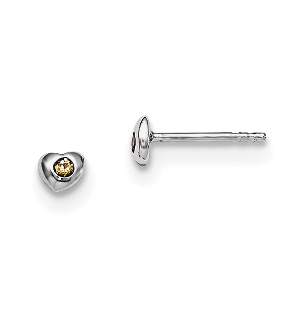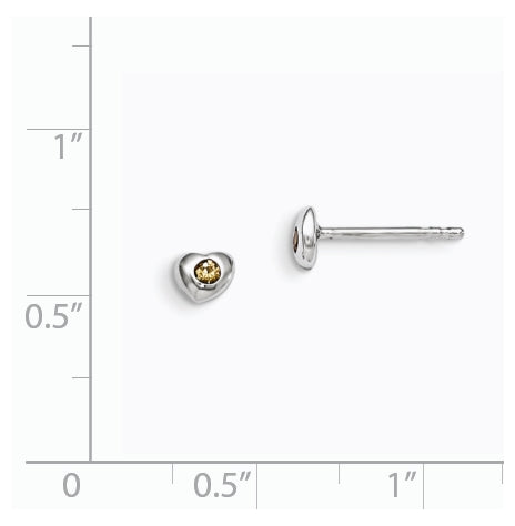 Sterling Silver Madi K Rhodium plated Polished November Yellow Preciosa Crystal Heart Children's Post Earrings