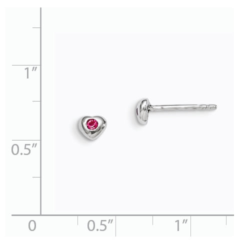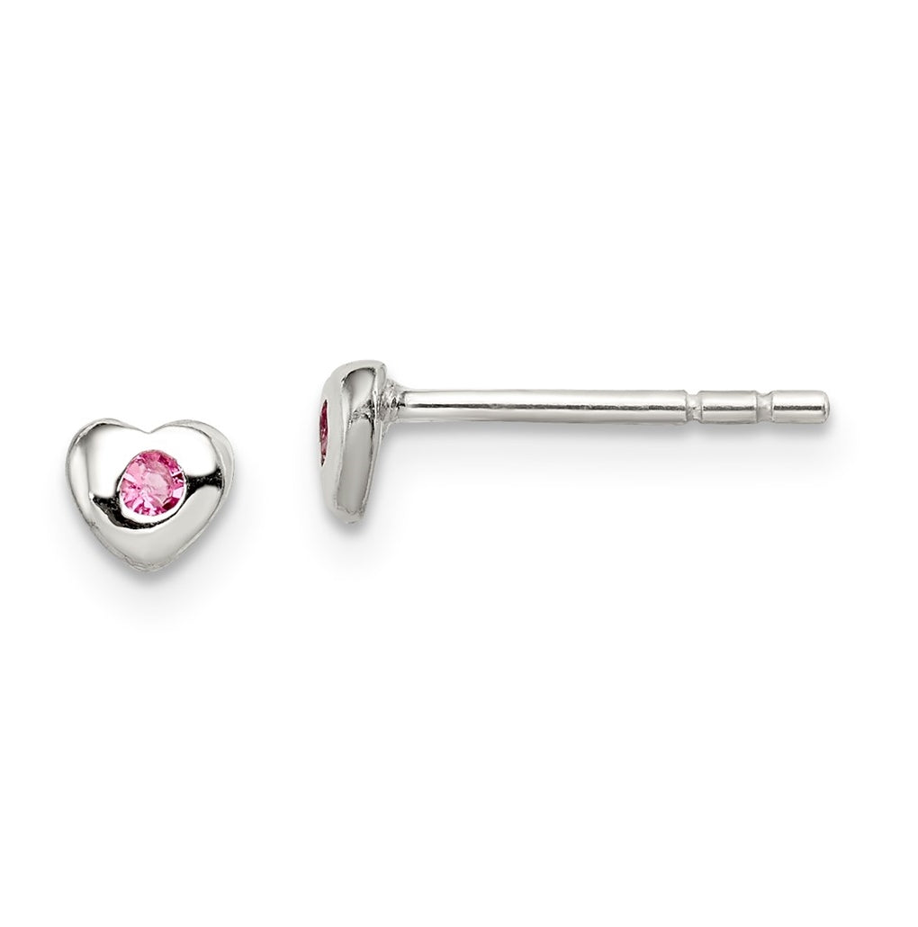 Sterling Silver Madi K Rhodium plated Polished October Pink Preciosa Crystal Heart Children's Post Earrings