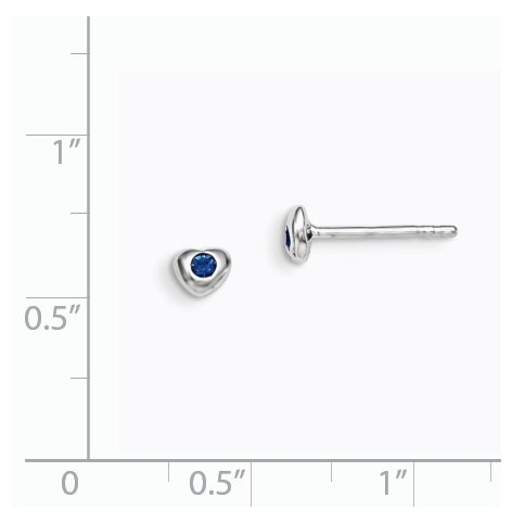 Sterling Silver Madi K Rhodium plated Polished September Blue Preciosa Crystal Heart Children's Post Earrings