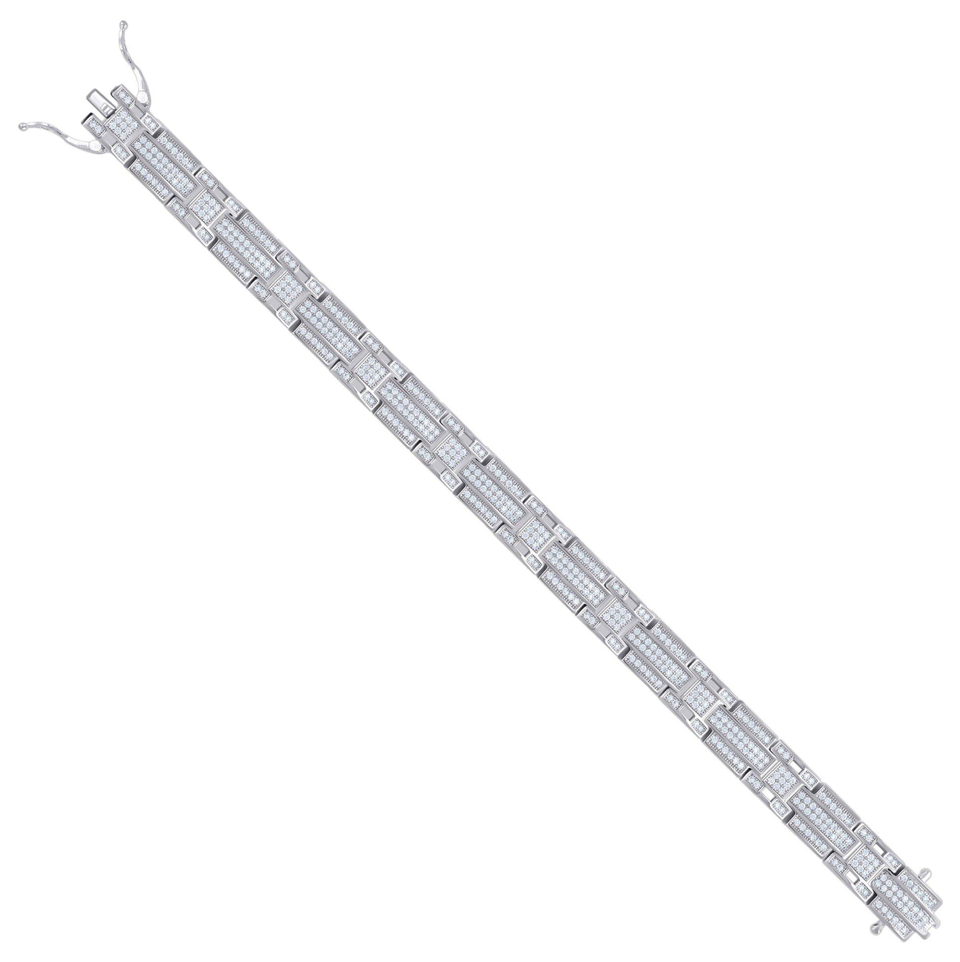 Sterling Silver Men Cubic Zirconia Link Bracelet