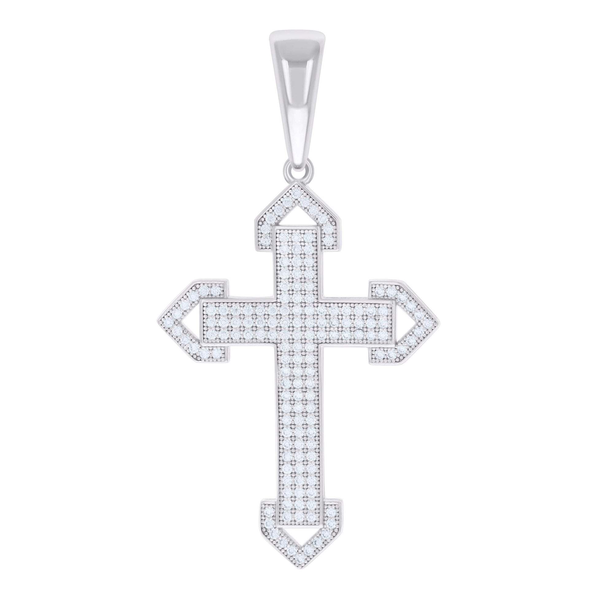 Sterling Silver Mens 0.96ct Moissanite Cross Religious Charm Pendant