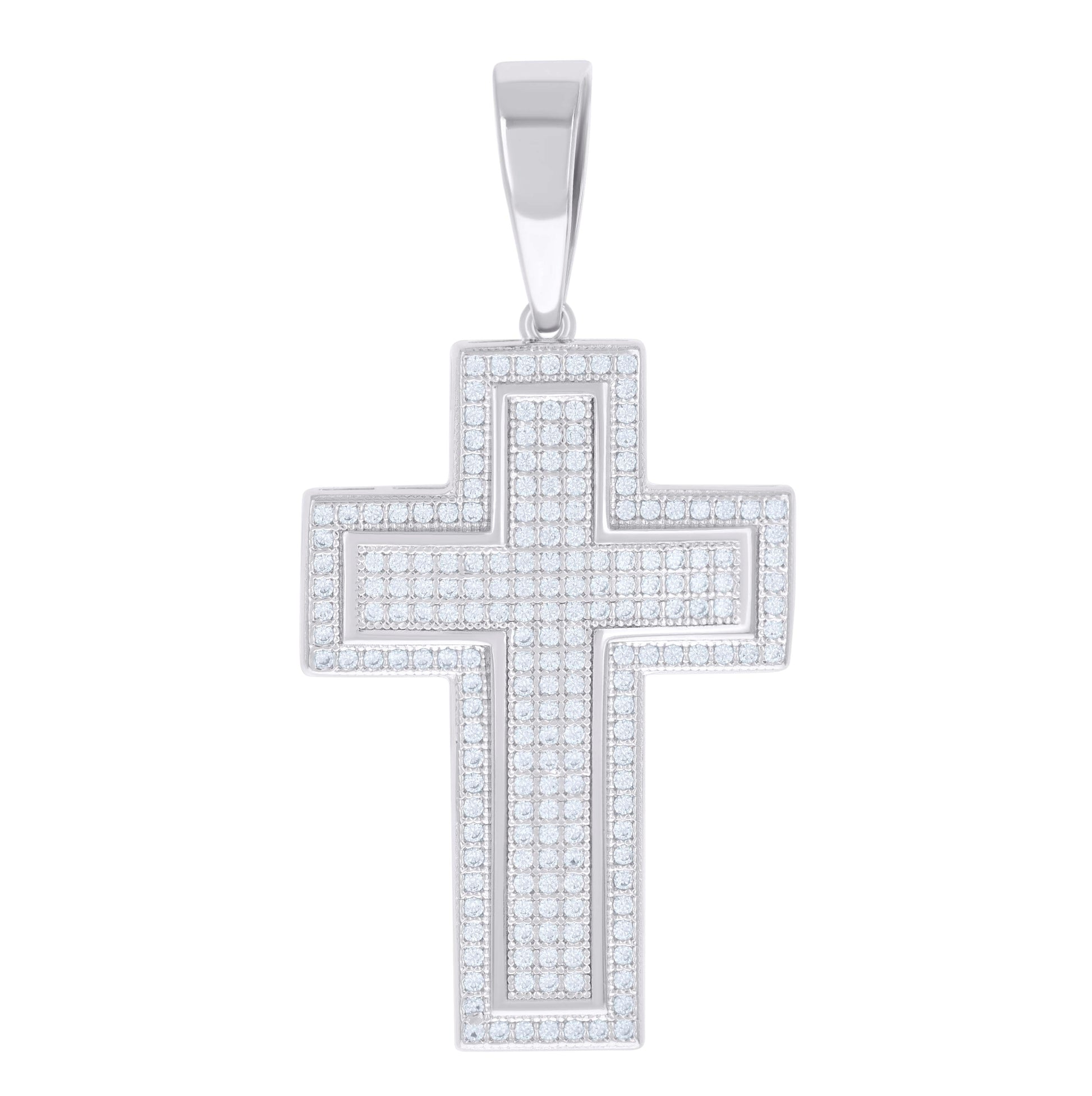 Sterling Silver Mens 1.04ct Moissanite Cross Religious Charm Pendant