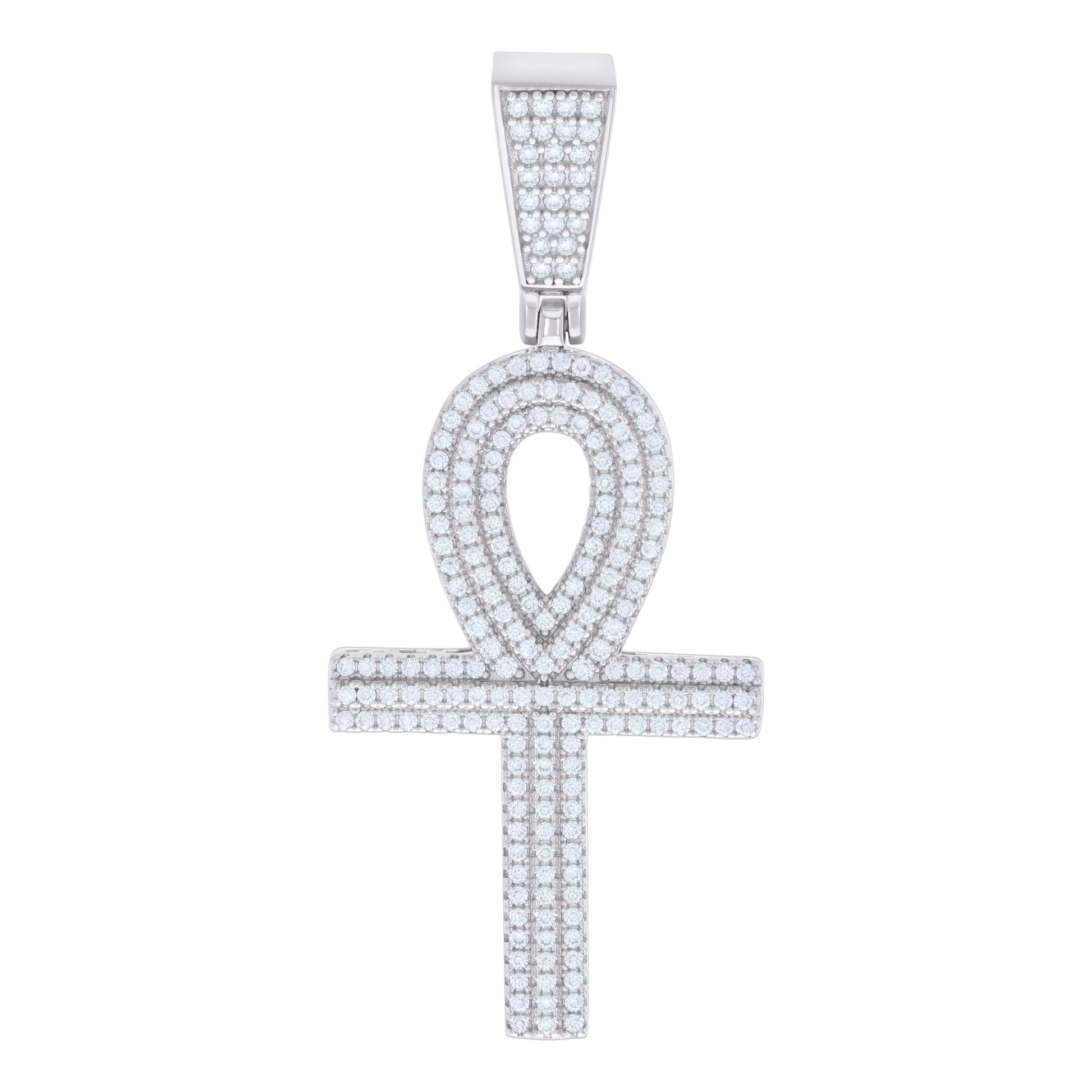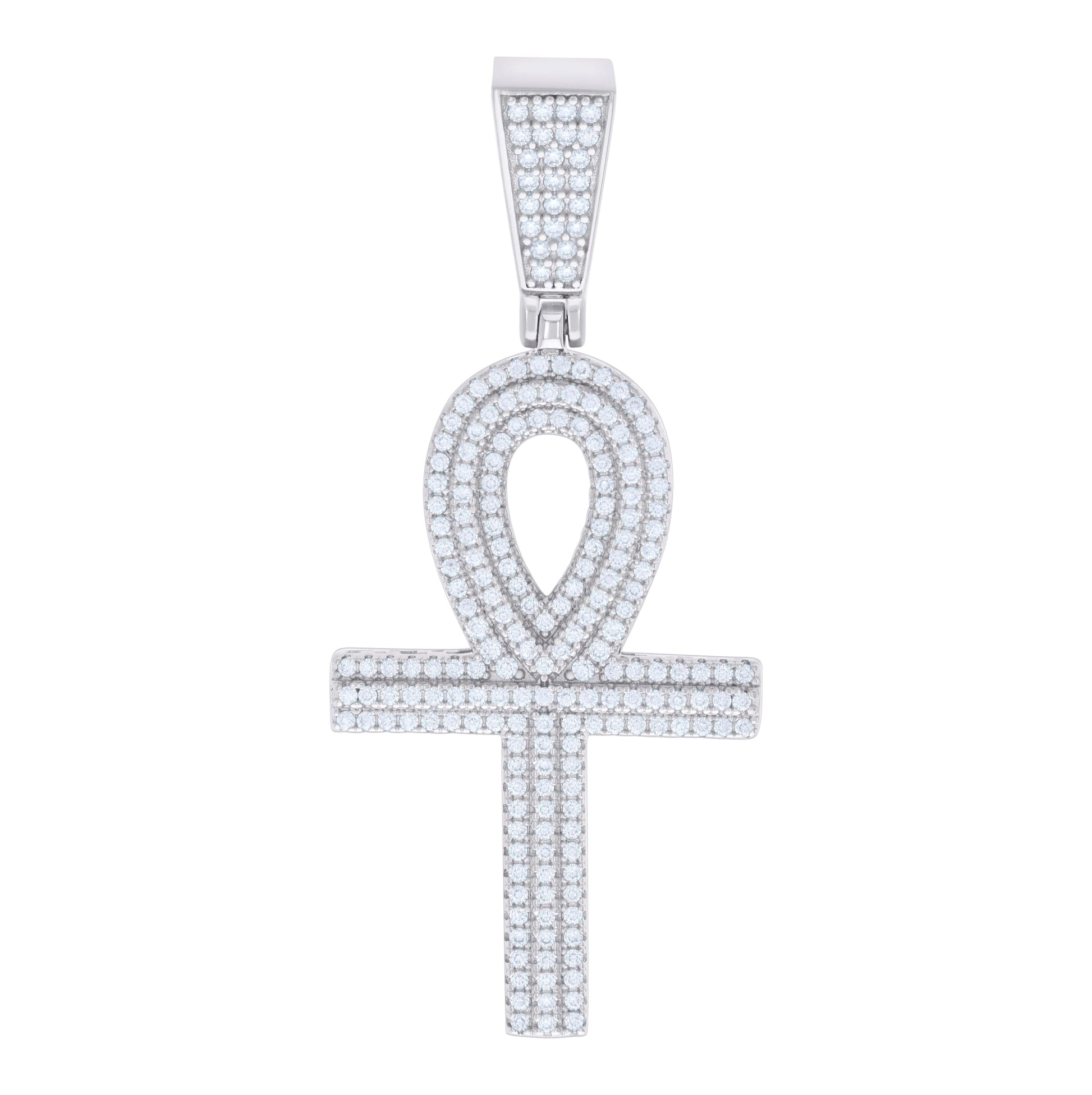 Sterling Silver Mens 1.15ct Moissanite Egyptian Ankh Cross Religious Charm Pendant
