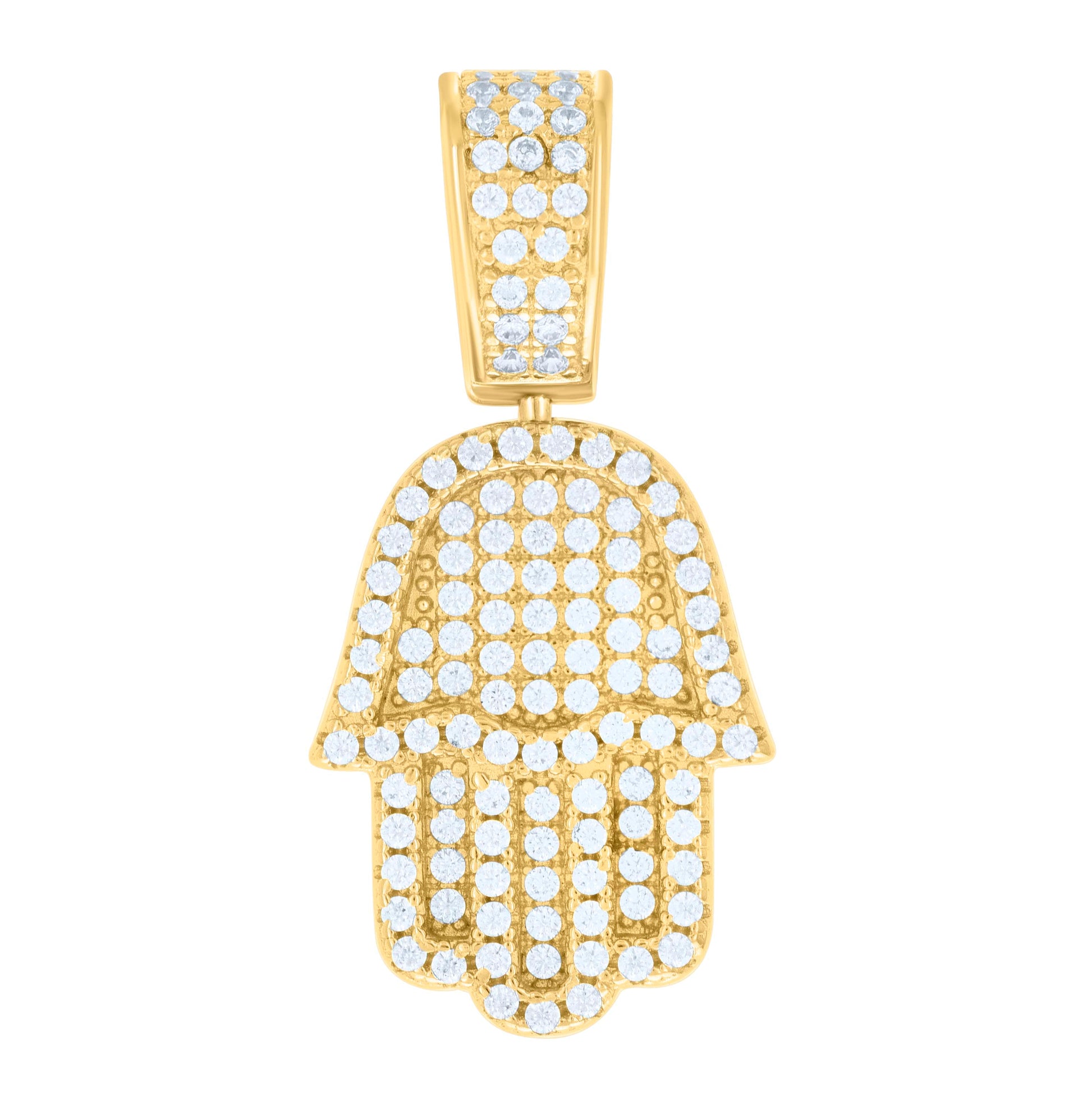 Sterling Silver Mens 1.19ct Moissanite Hamsa Symbol Religious Charm Pendant