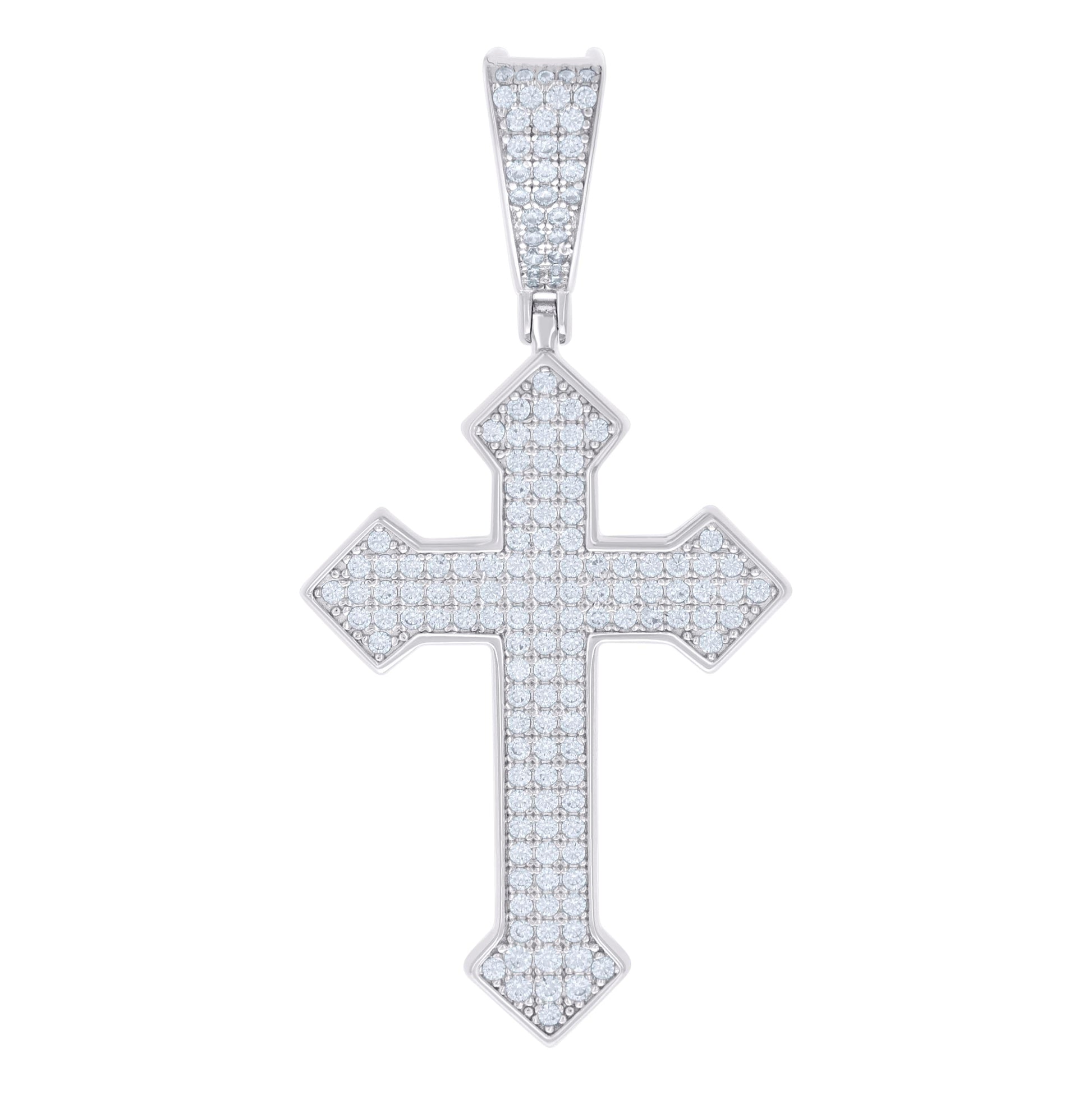 Sterling Silver Mens 1.22ct Moissanite Cross Religious Charm Pendant