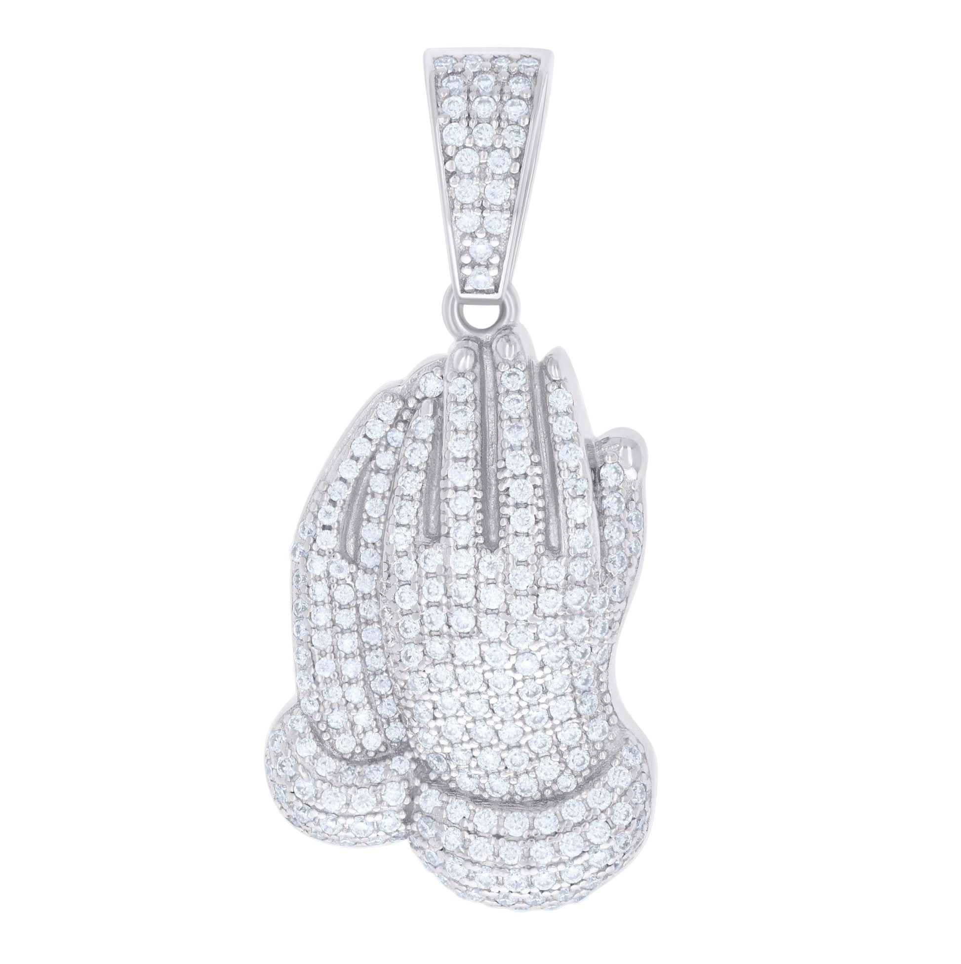 Sterling Silver Mens 1.33ct Moissanite Praying Hands Symbol Religious Charm Pendant