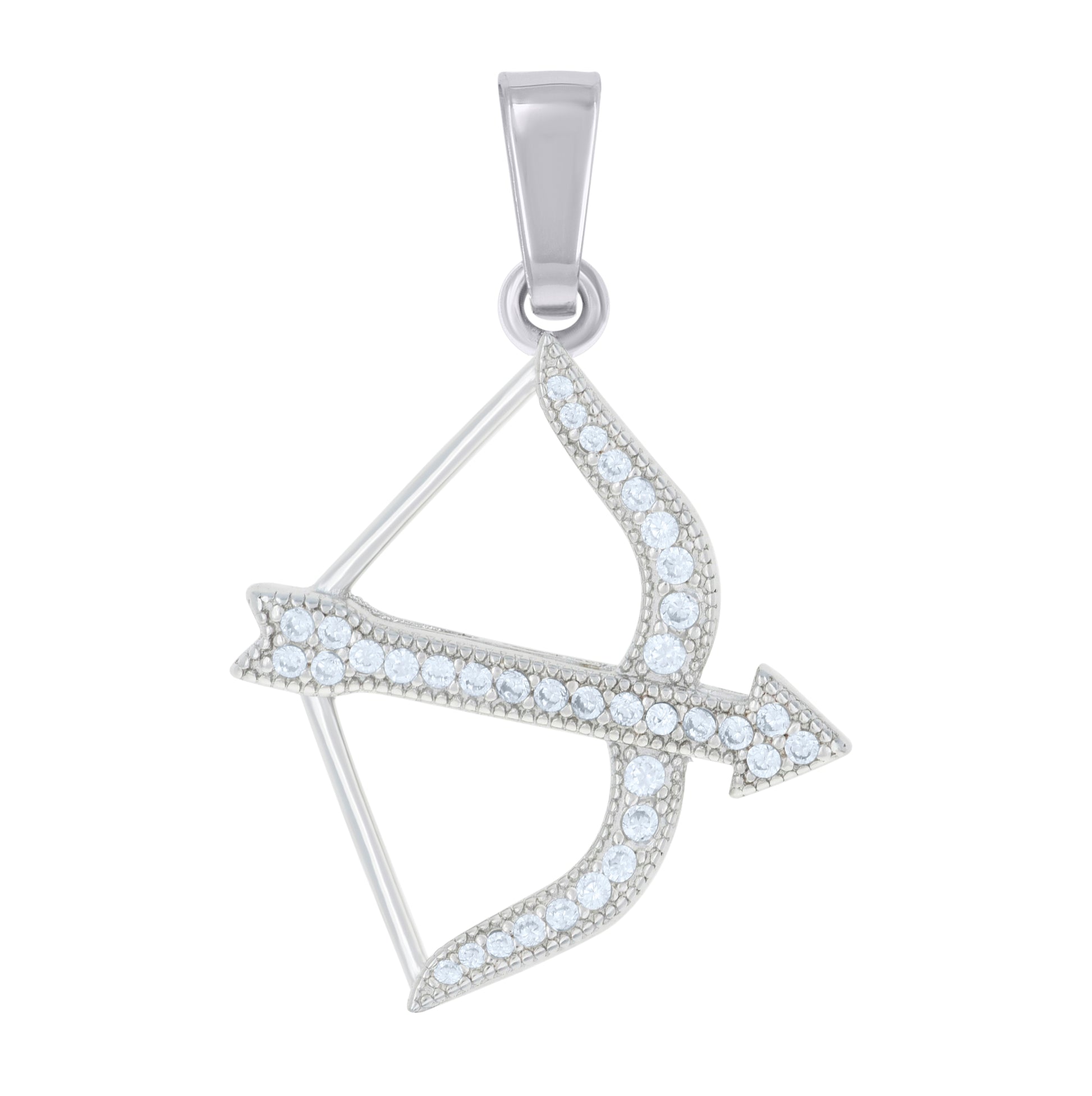 Sterling Silver Mens Cubic Zirconia Archery Sports Charm Pendant