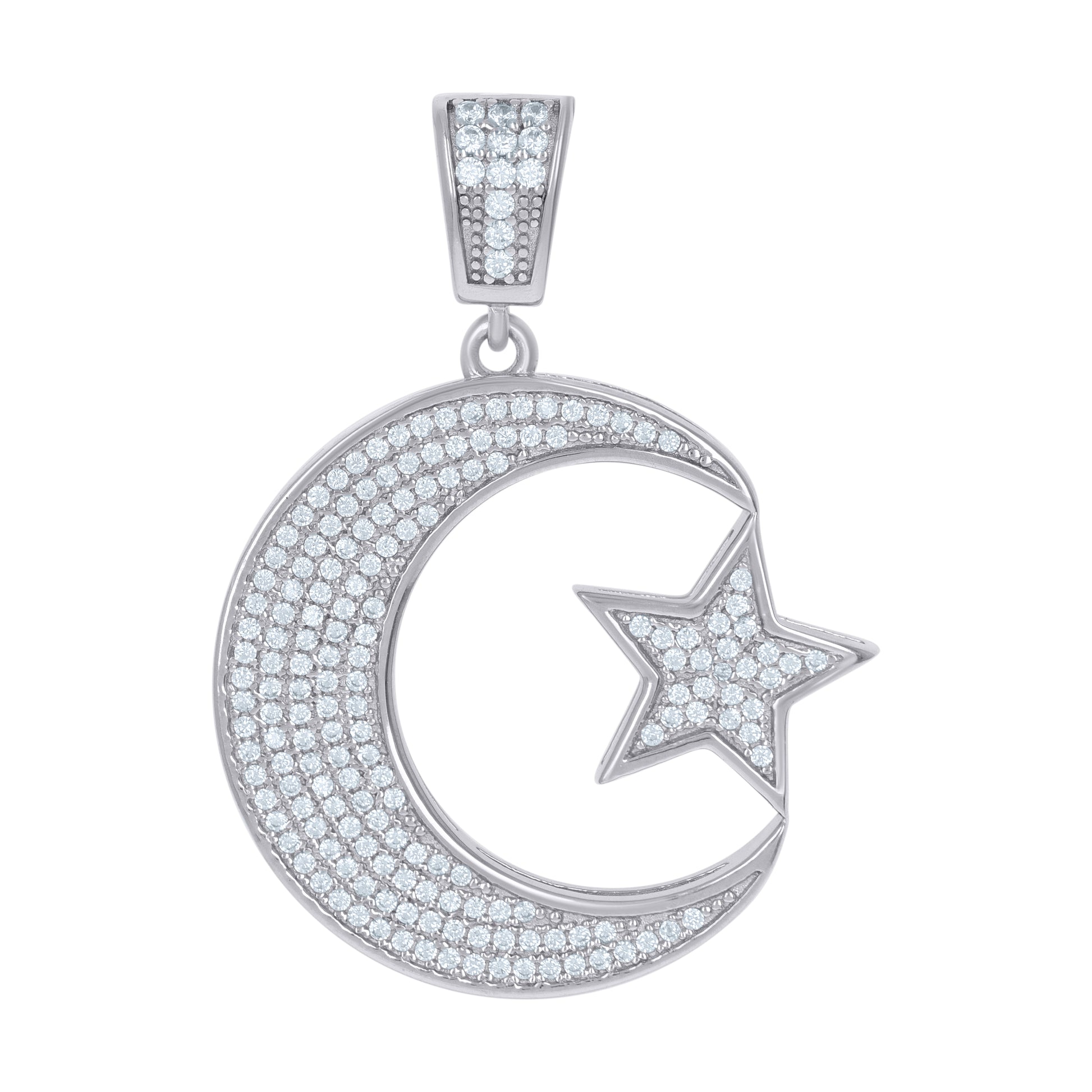 Sterling Silver Mens Cubic Zirconia Celestial Moon Star Charm Pendant