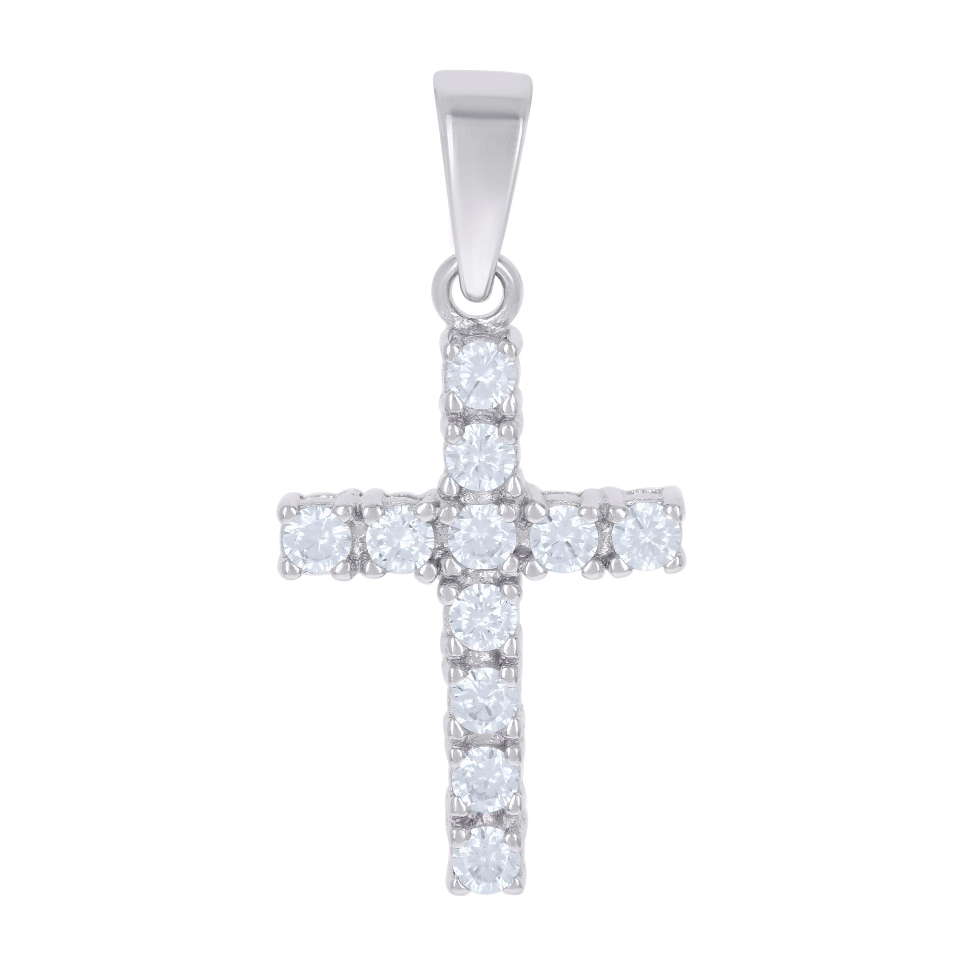 Sterling Silver Mens Cubic Zirconia Cross Religious Charm Pendant