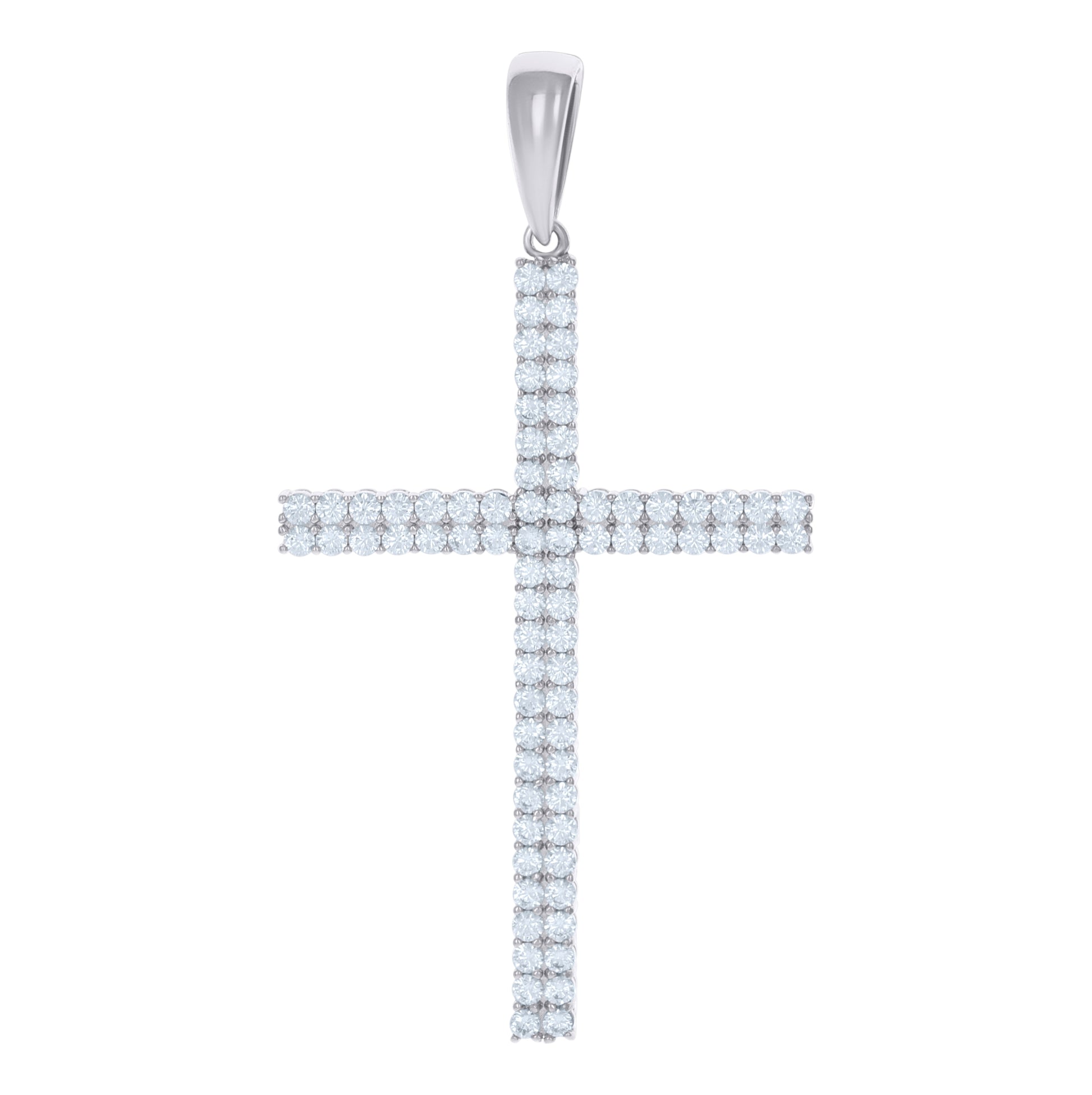 Sterling Silver Mens Cubic-Zirconia Cross Religious Charm Pendant