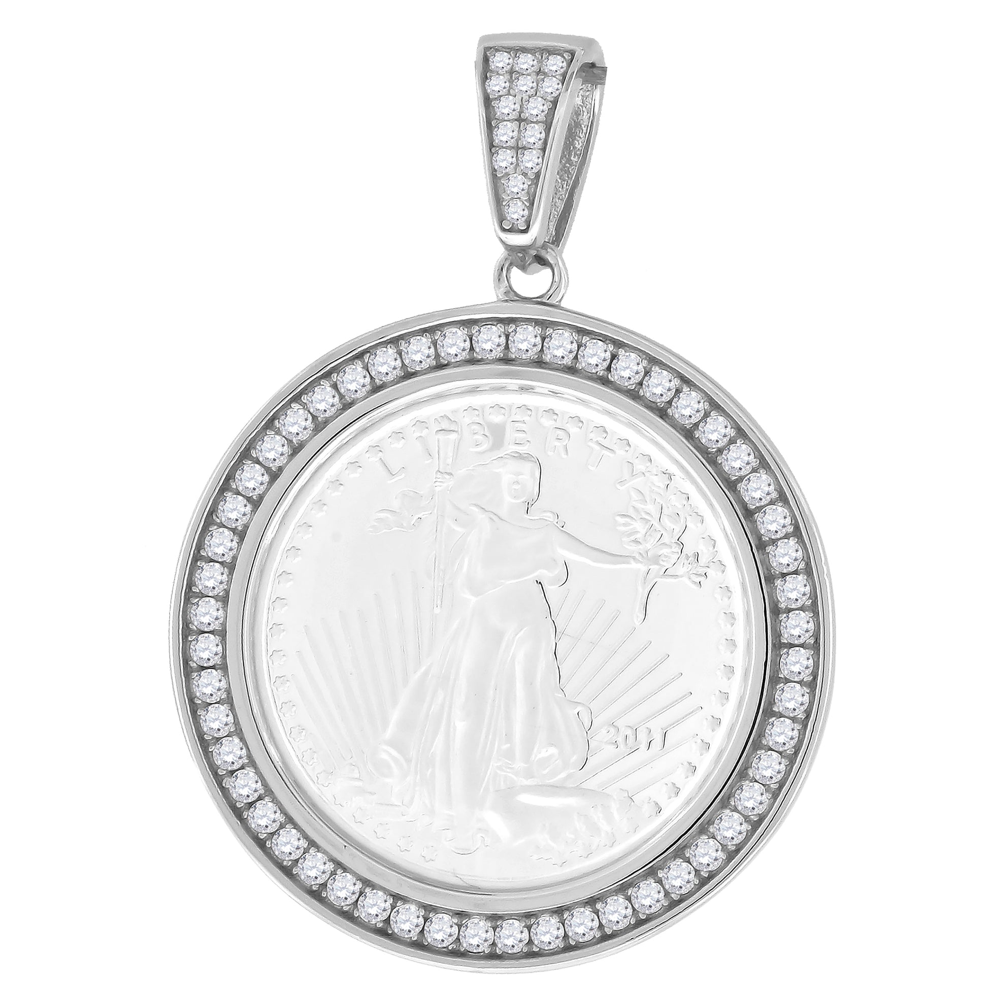 Sterling Silver Mens Cubic-Zirconia Medallion Lady Liberty Symbol Religious Charm Pendant