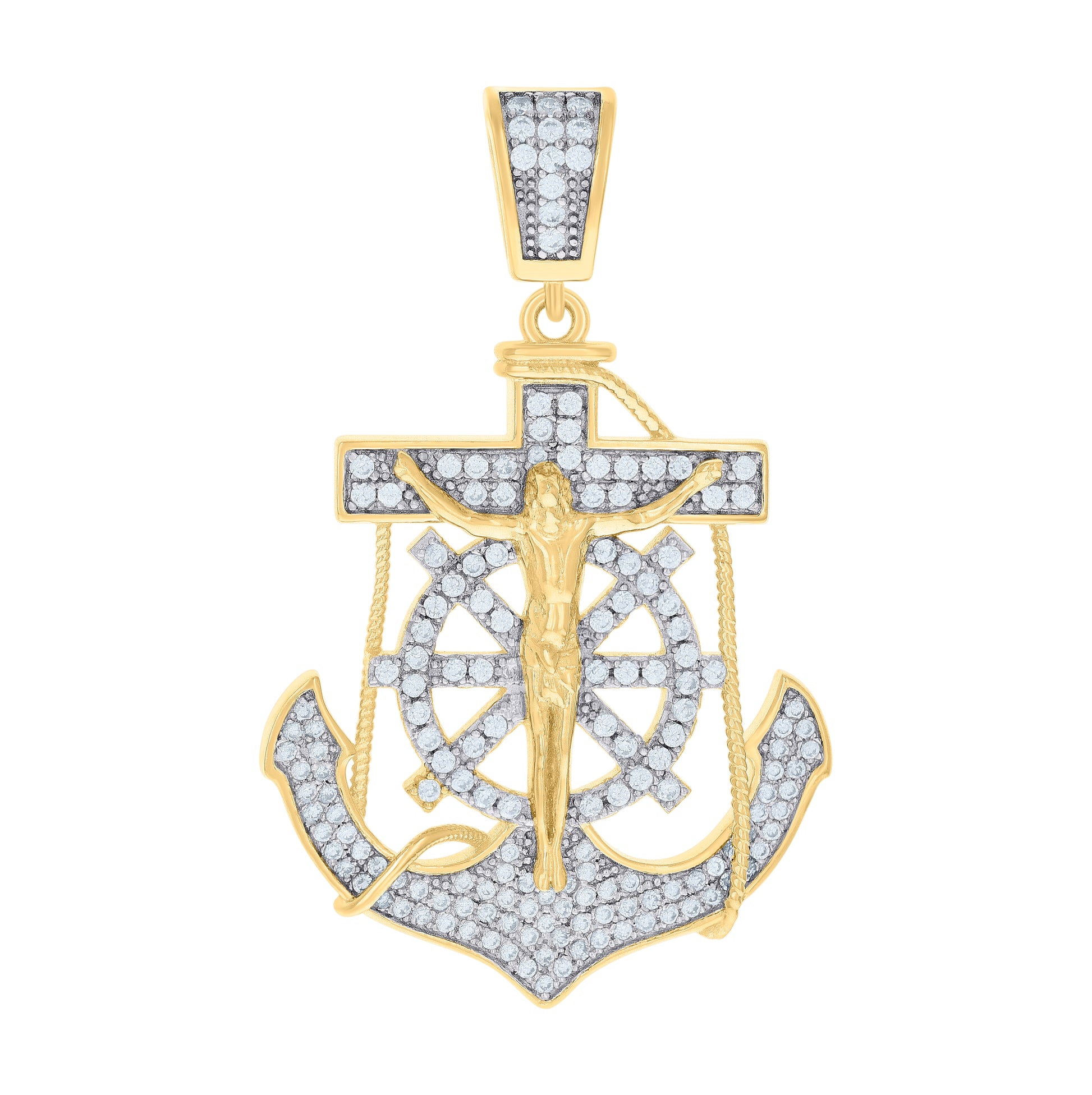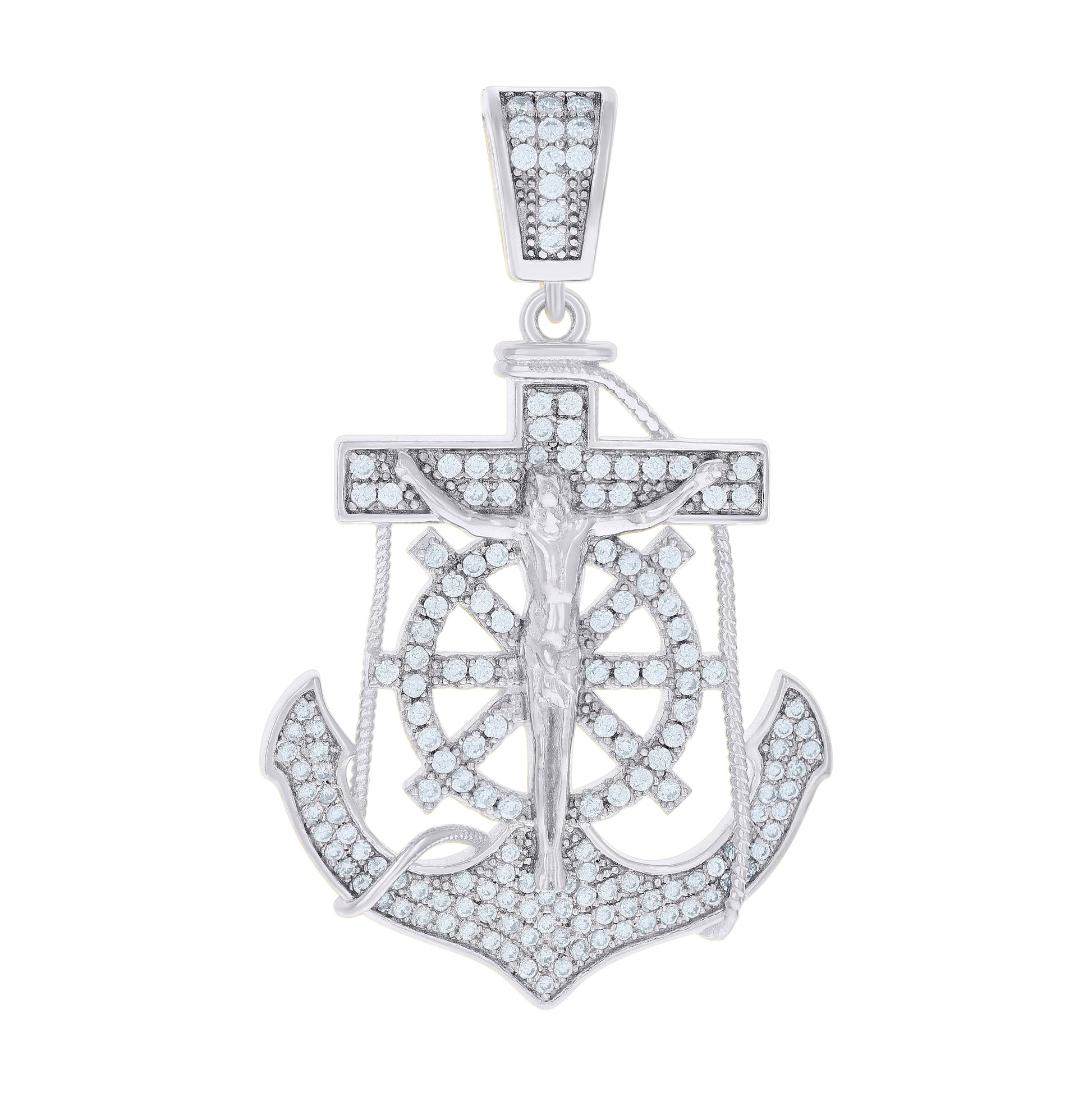 Sterling Silver Mens Cubic Zirconia Religious Anchor Crucifix Charm Pendant