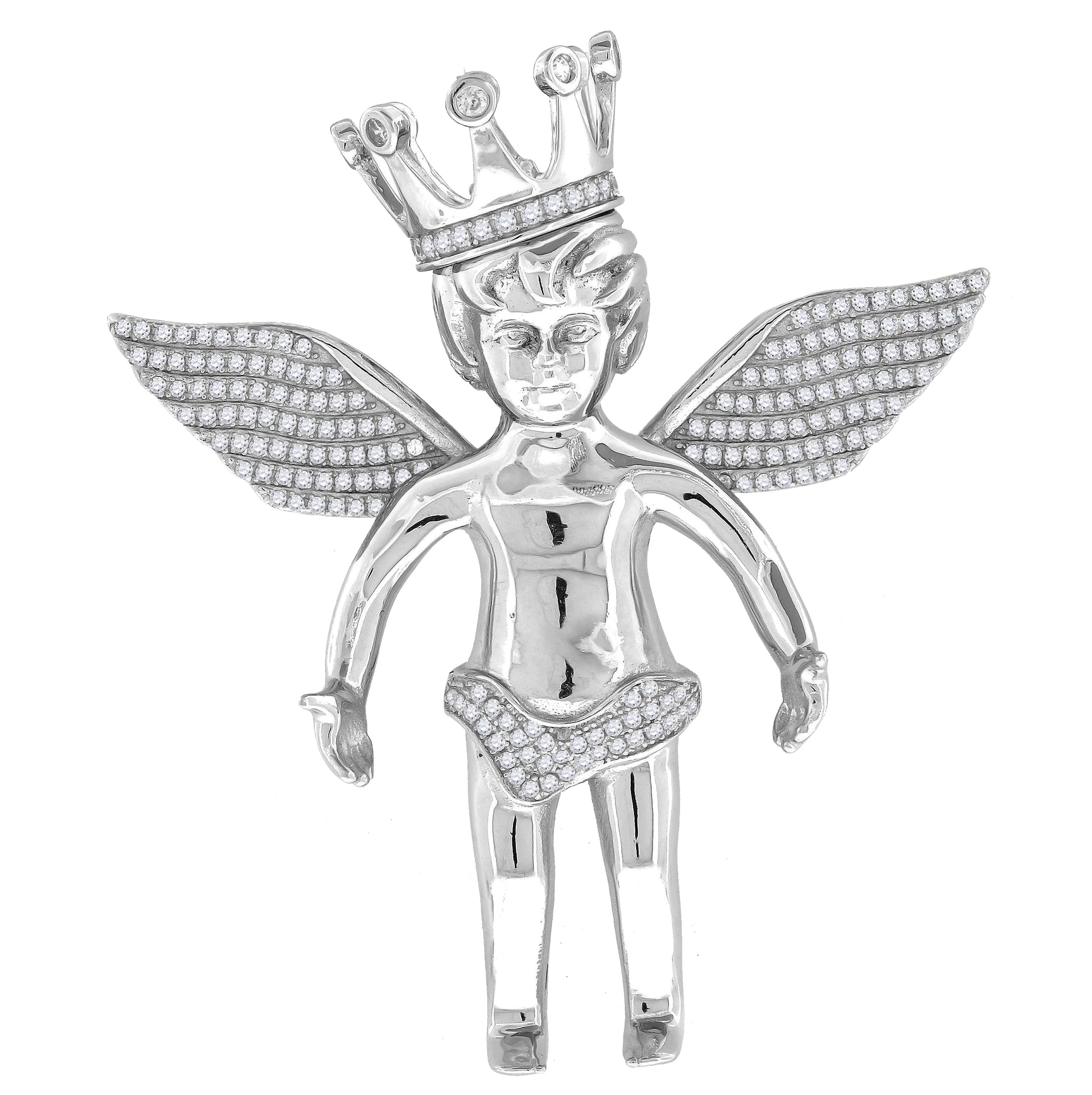Sterling Silver Mens Cubic Zirconia Religious Angel Crown Charm Pendant