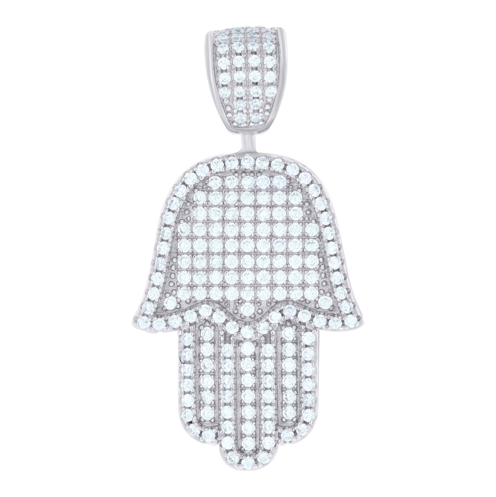 Sterling Silver Mens Cubic Zirconia Religious Hamsa Charm Pendant