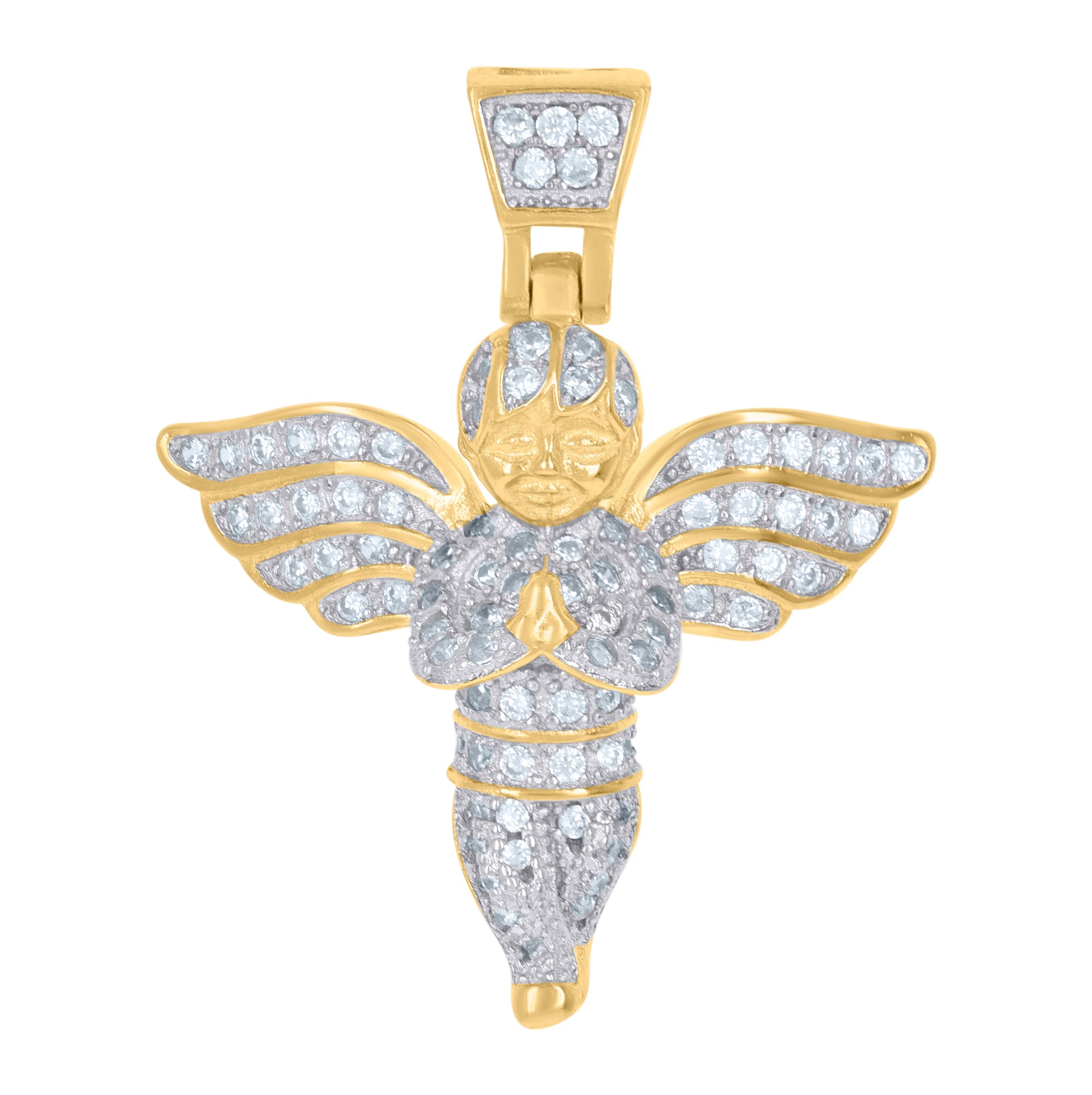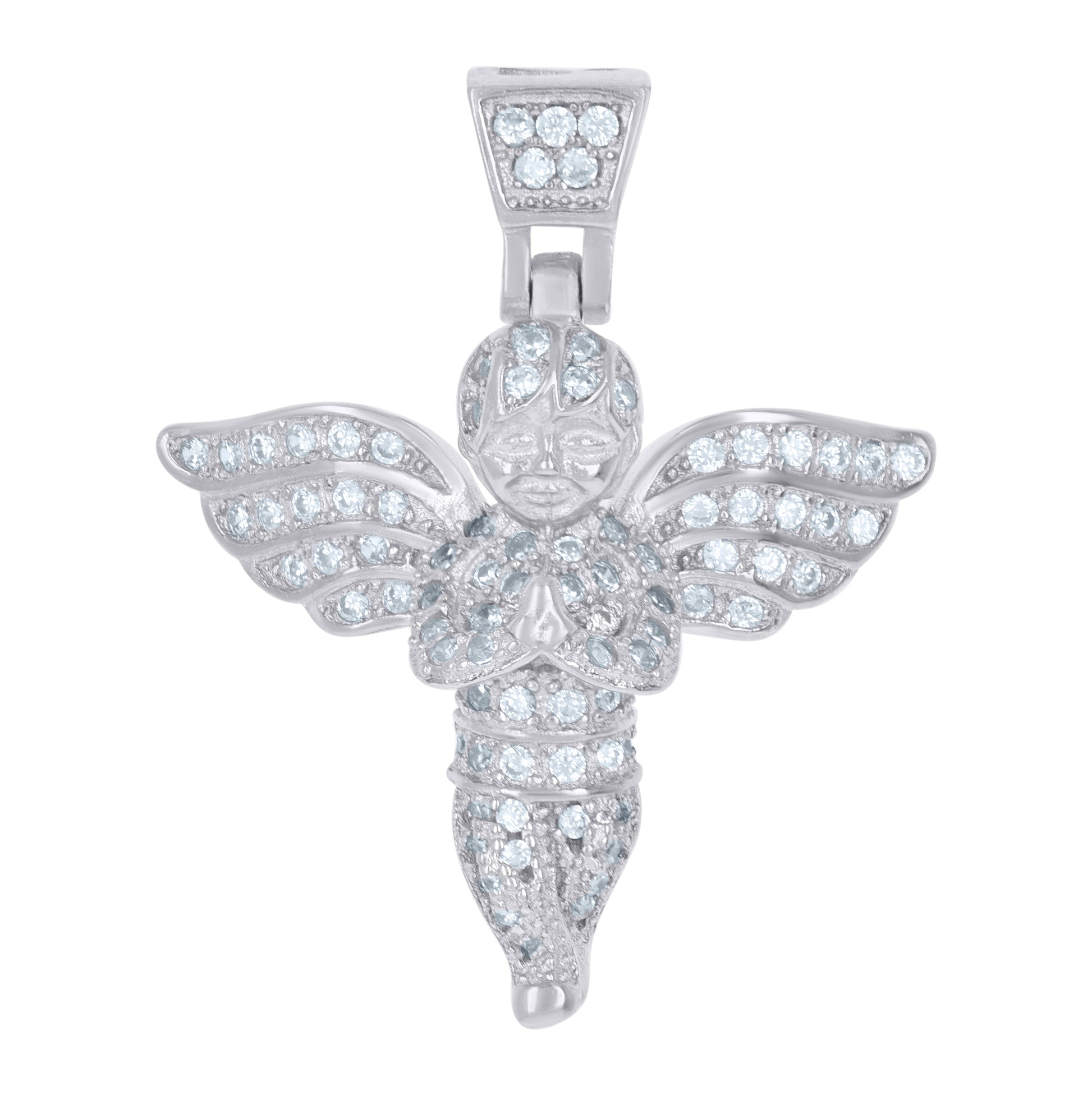 Sterling Silver Mens Cubic Zirconia Religious Praying Angel Charm Pendant