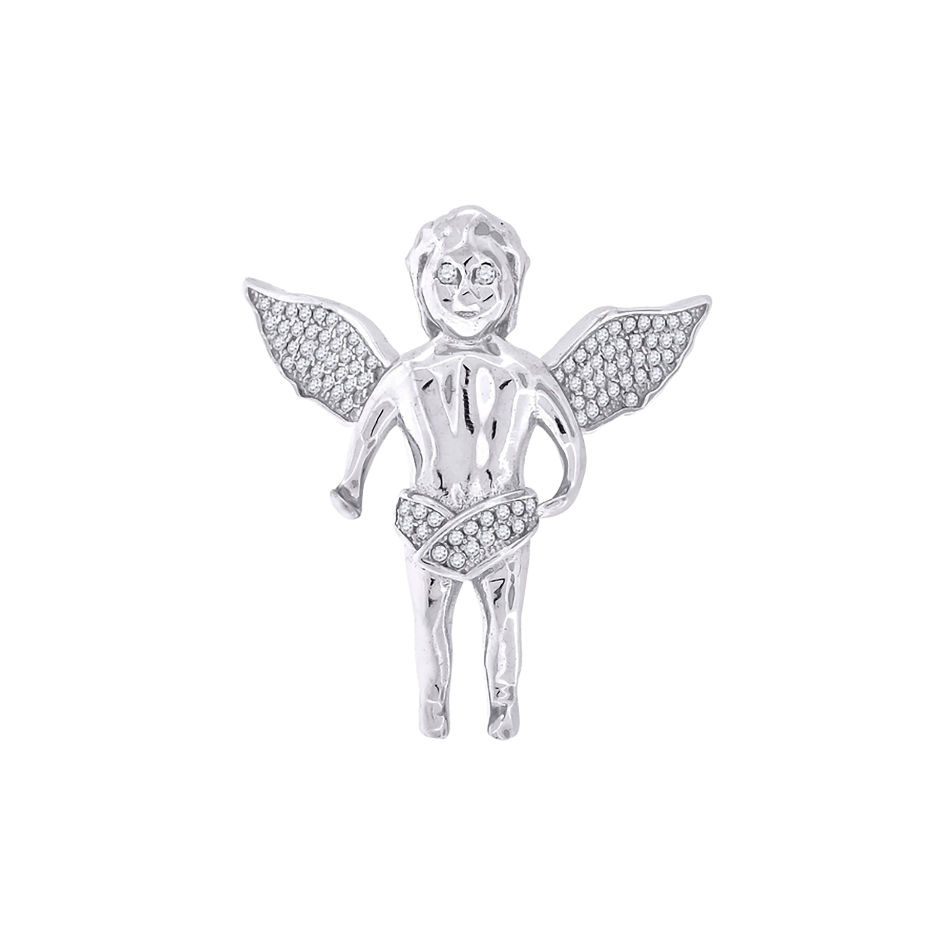 Sterling Silver Mens Cubic Zirconia Religious Praying Angel Charm Pendant