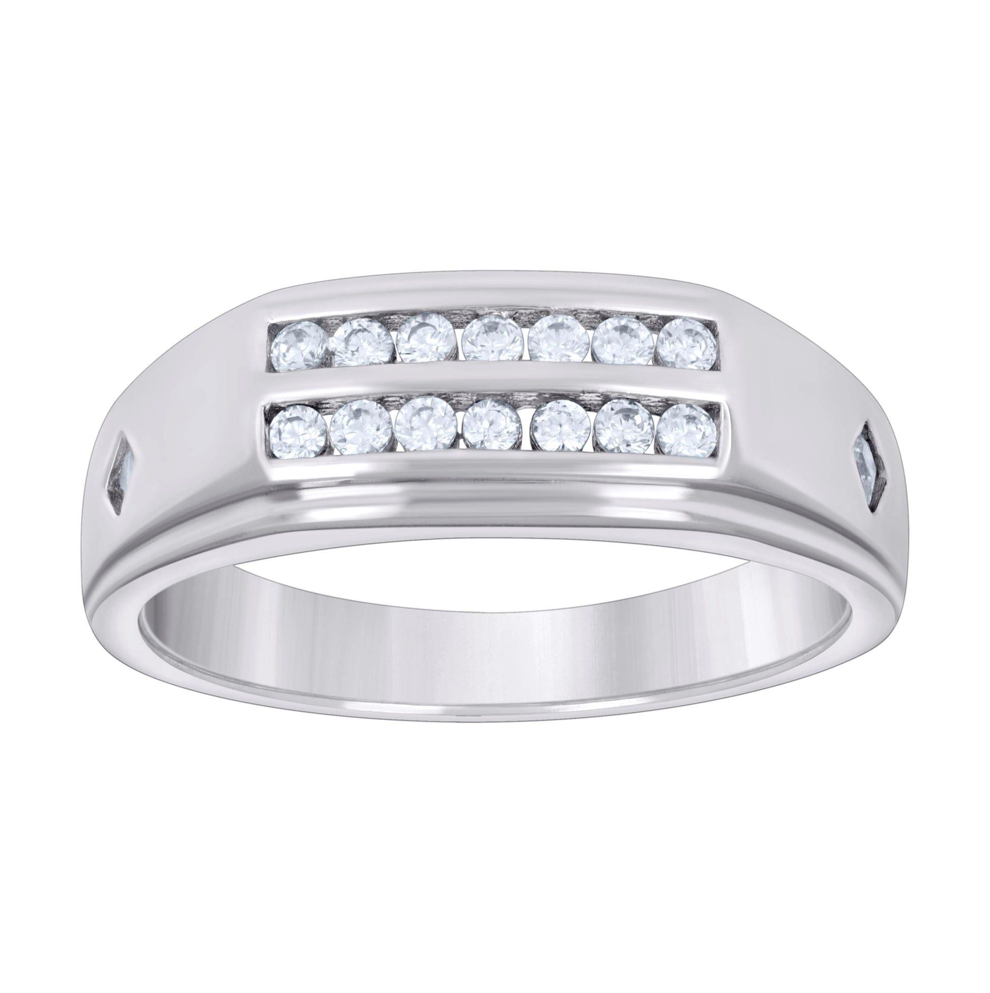 Sterling Silver Mens Cubic Zirconia Sizes 8 To 12 Two-Rows Bridal Anniversary Engagement WeddingBand Ring