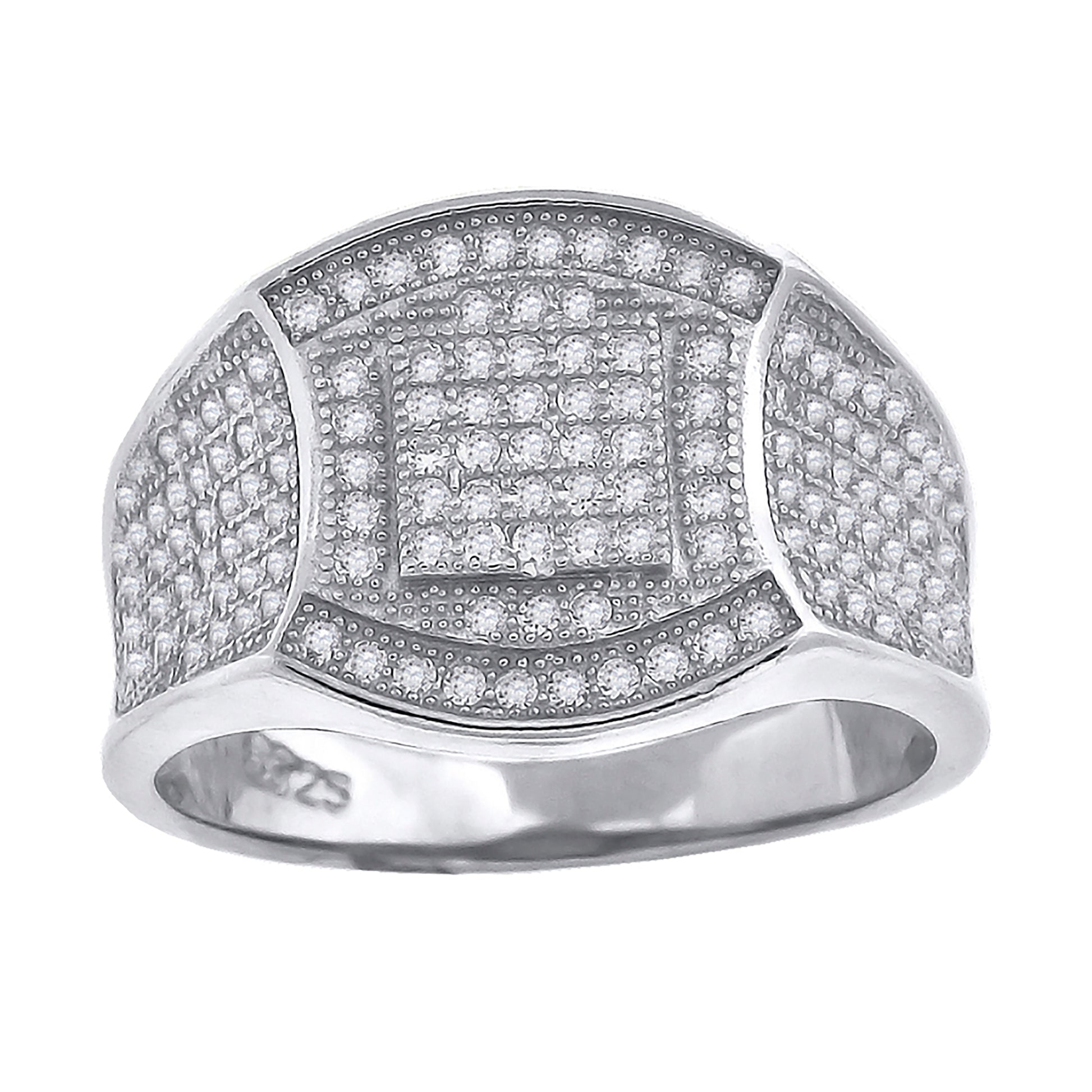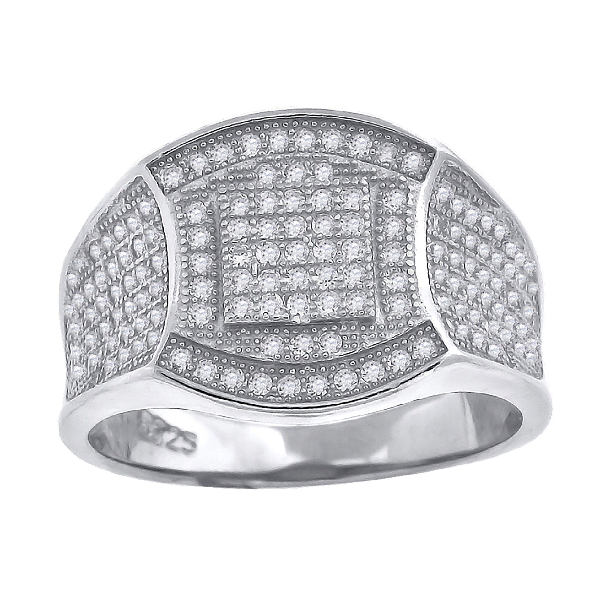 Sterling Silver Mens Cubic Zirconia Wide Band Fashion Bridal Anniversary Wedding Engagement Band Ring Sizes 9 To 12