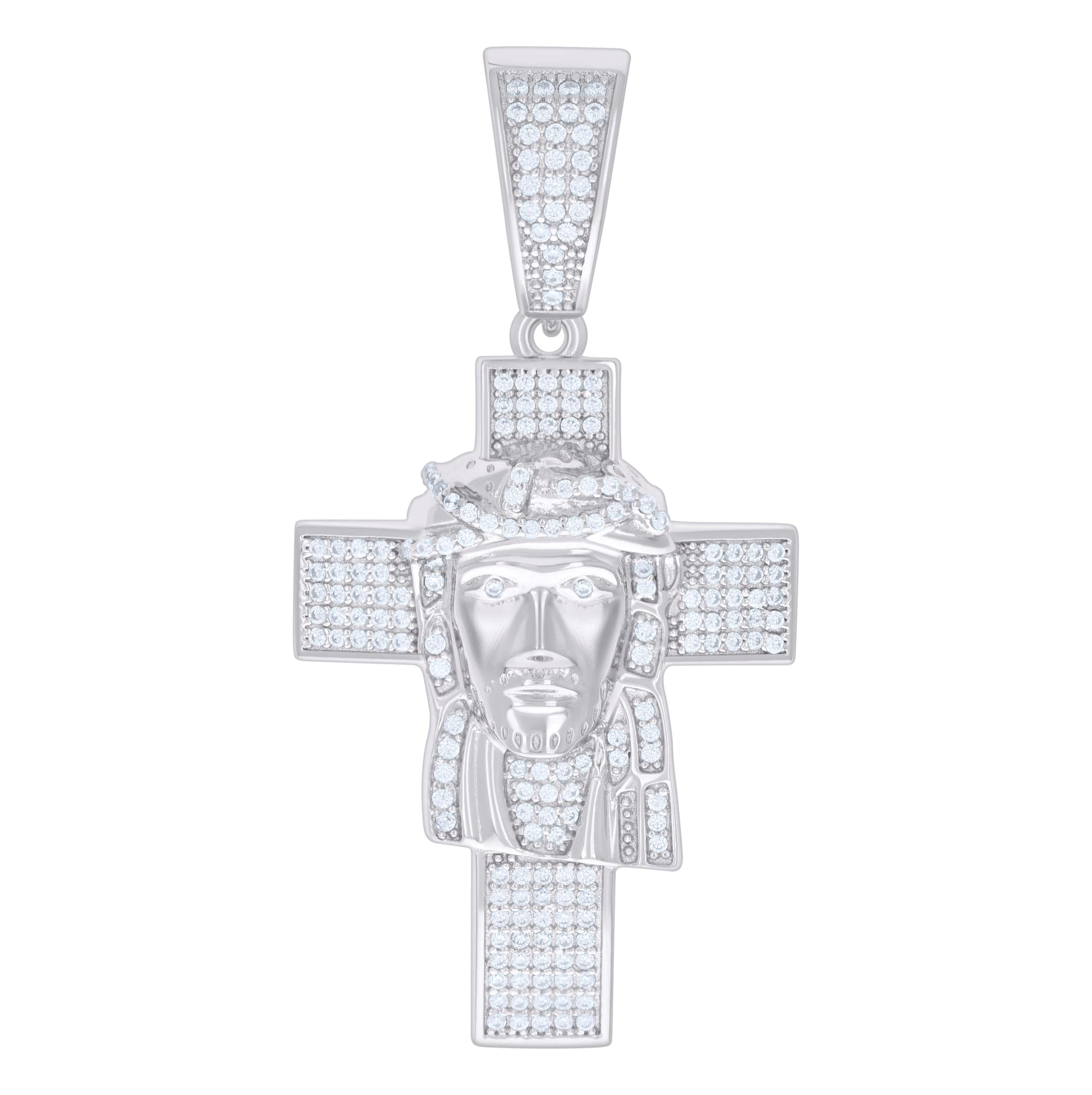 Sterling Silver Mens Cubic Zirconia Jesus Cross Religious Charm Pendant